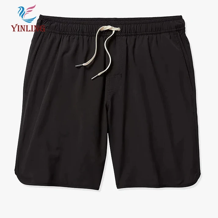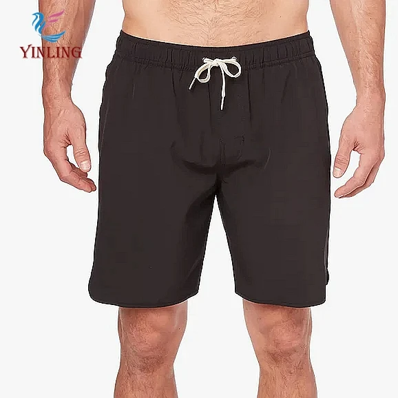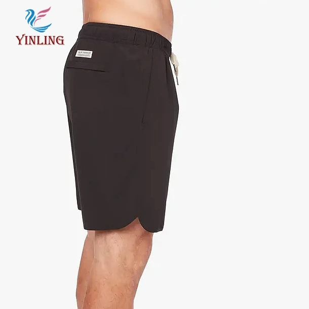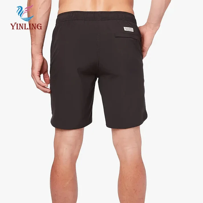 Factory Custom Solid Black Quick Dry Board Shorts Breathable and Anti-Wrinkle Bathing Suit With Zipper Pockets