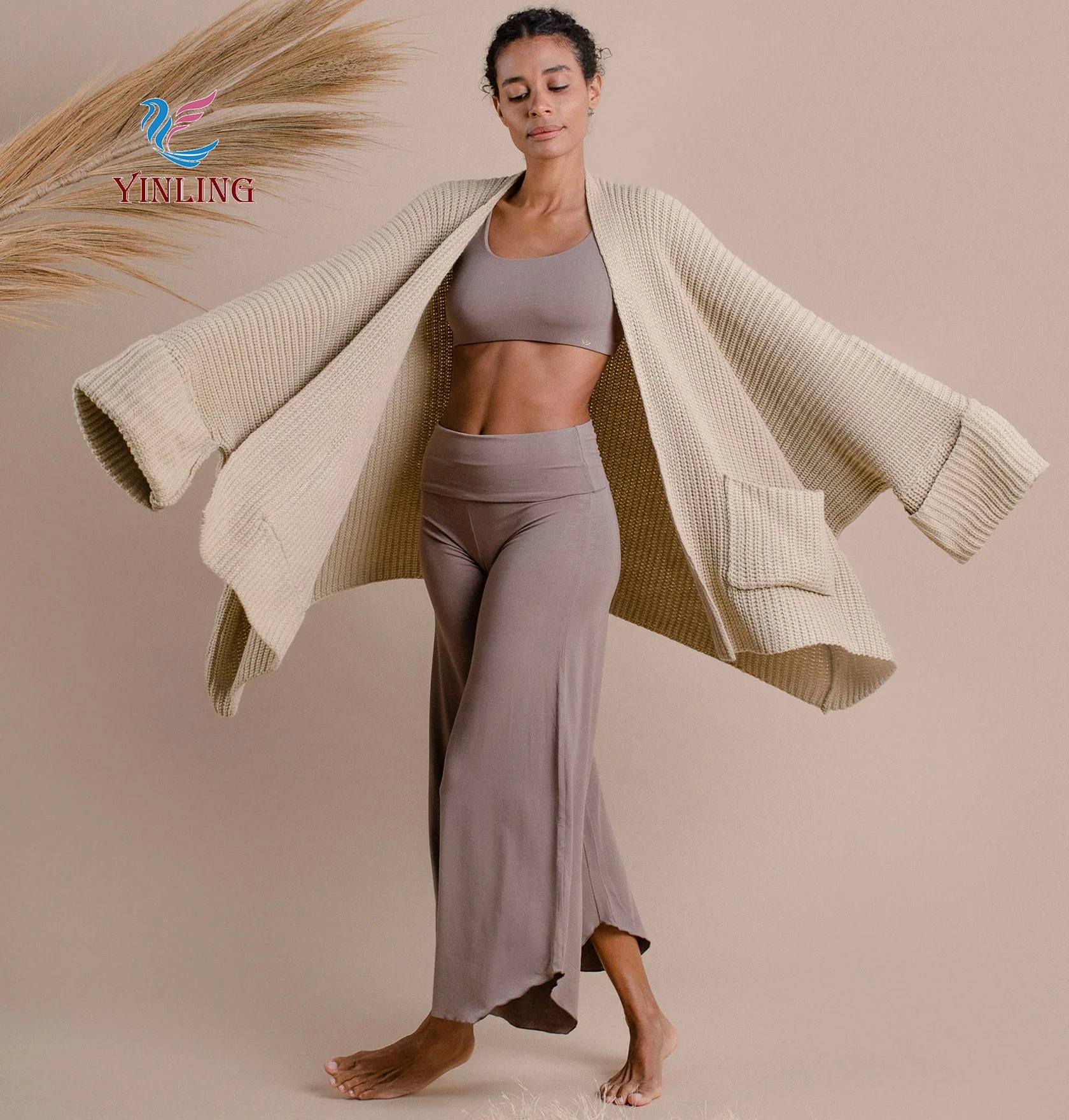 Women Gym Fitness Suit 2 Piece Yoga Set Halter Vest Loose Straight Pants Long Sleeve Cardigan Women Sport Fitness Tracksuit Set