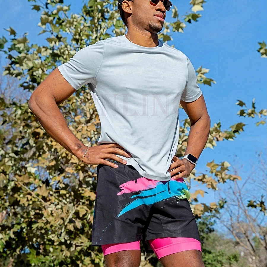 Double Layer Quick Dry Plus Size Men's Shorts Waterproof Phone Pockets Design Gym Shorts Men