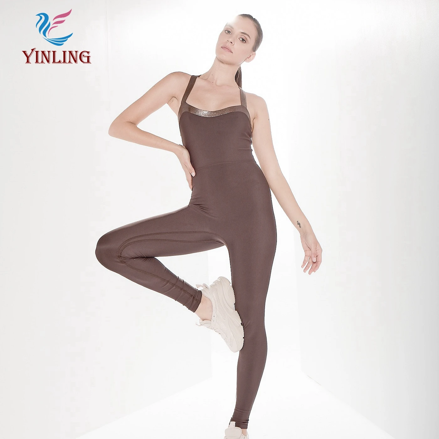 Custom Logo Women Yoga Fitness Activewear Workout One Piece Bodysuit Stretch Jumpsuits