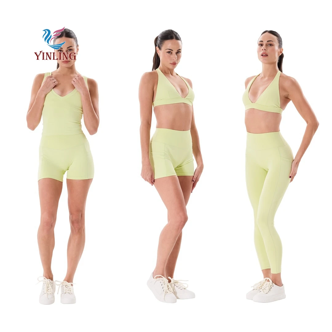 New Design High Stretchy Workout Gym Fitness Sets Breathable Leggings Sets Yoga Pants High Waist Lift Tight Short Yoga Wear