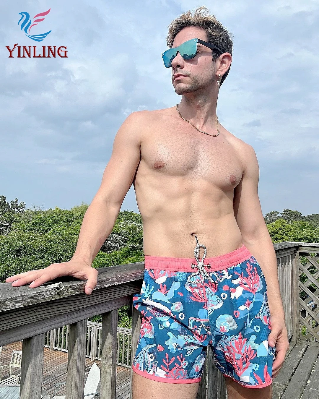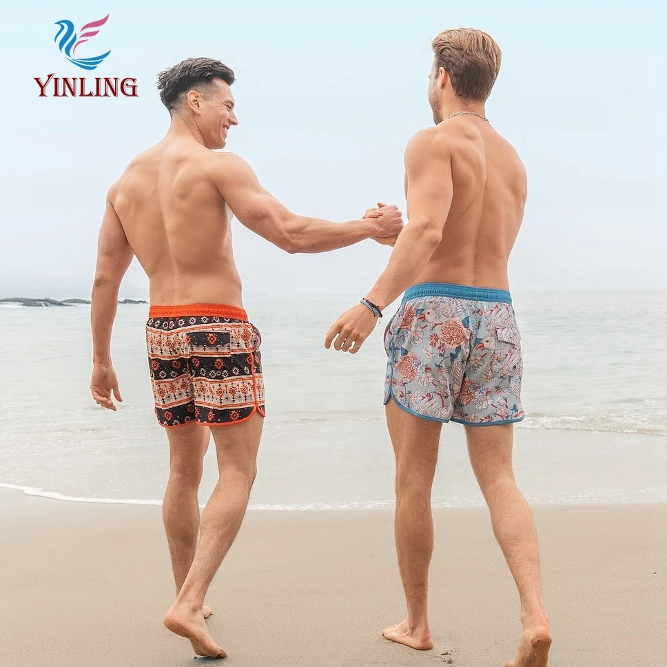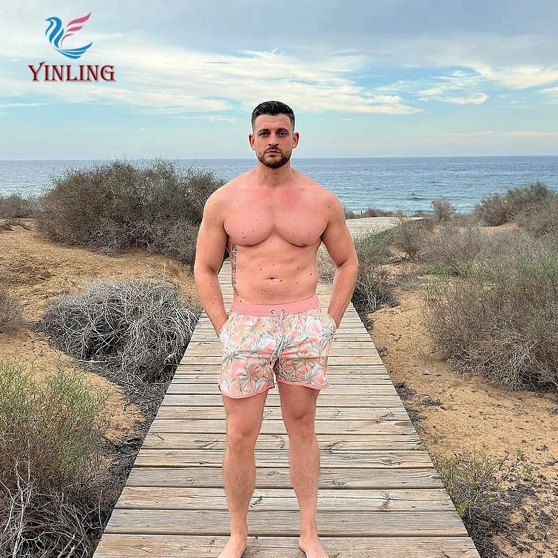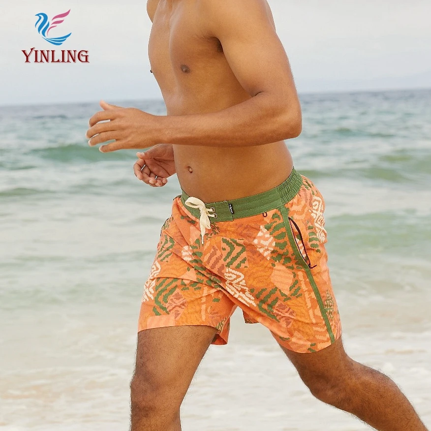 Custom Surf Men'S Elastic Waterproof Polyester Swimming Shorts Printed Beach Shorts for Men