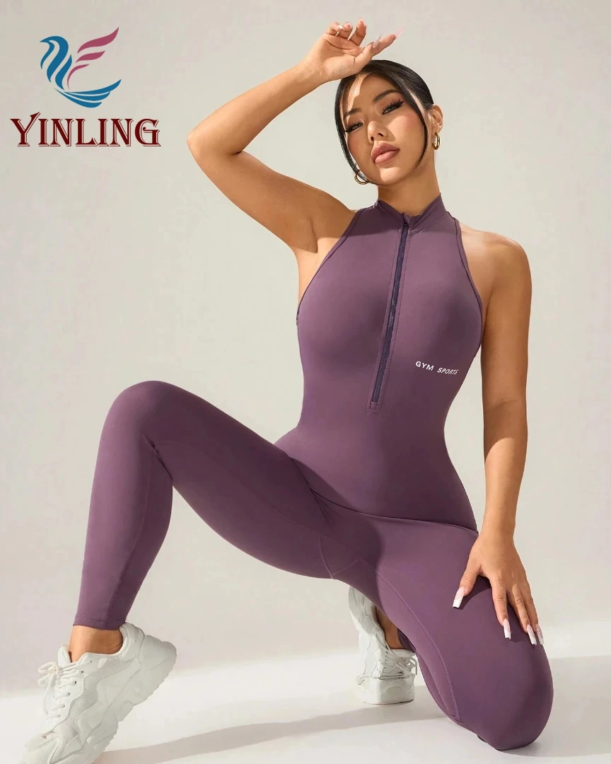 Custom Logo One Piece Fitness Open Back Slim Fit Flare Leg Pants Women Workout Yoga Jumpsuit Rompers for Sports