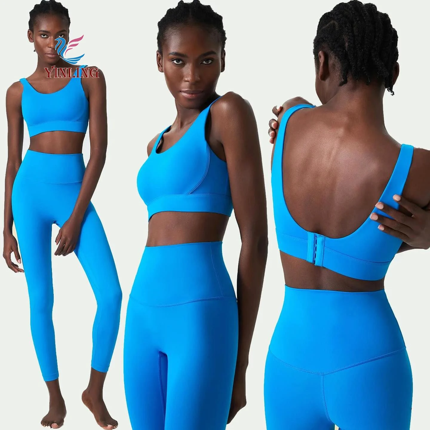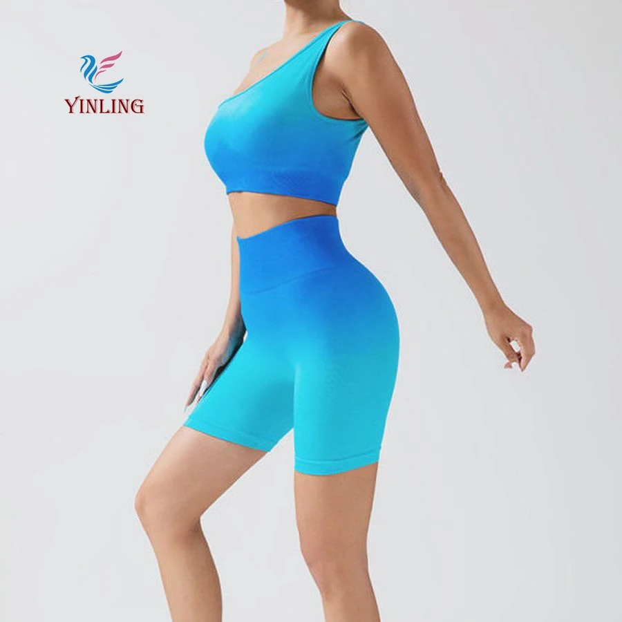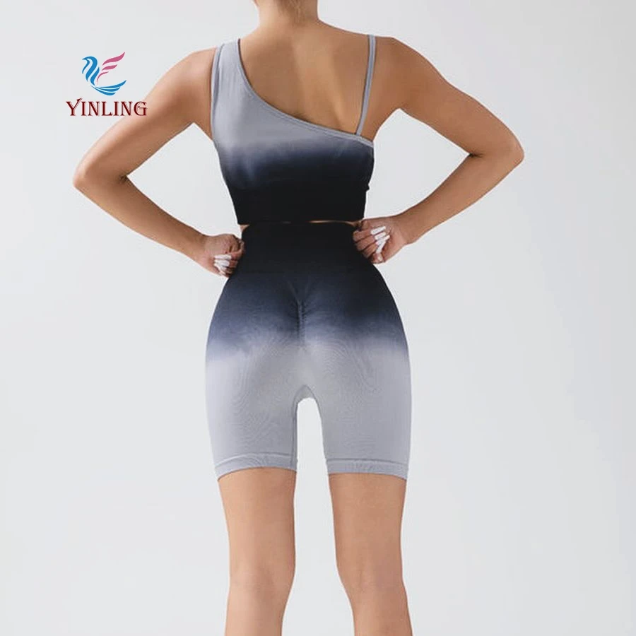 Breathable High Waist Gym Fitness Elastic Sportswear Backless 2 Pieces Biker Short Workout Set Training Clothes for Women