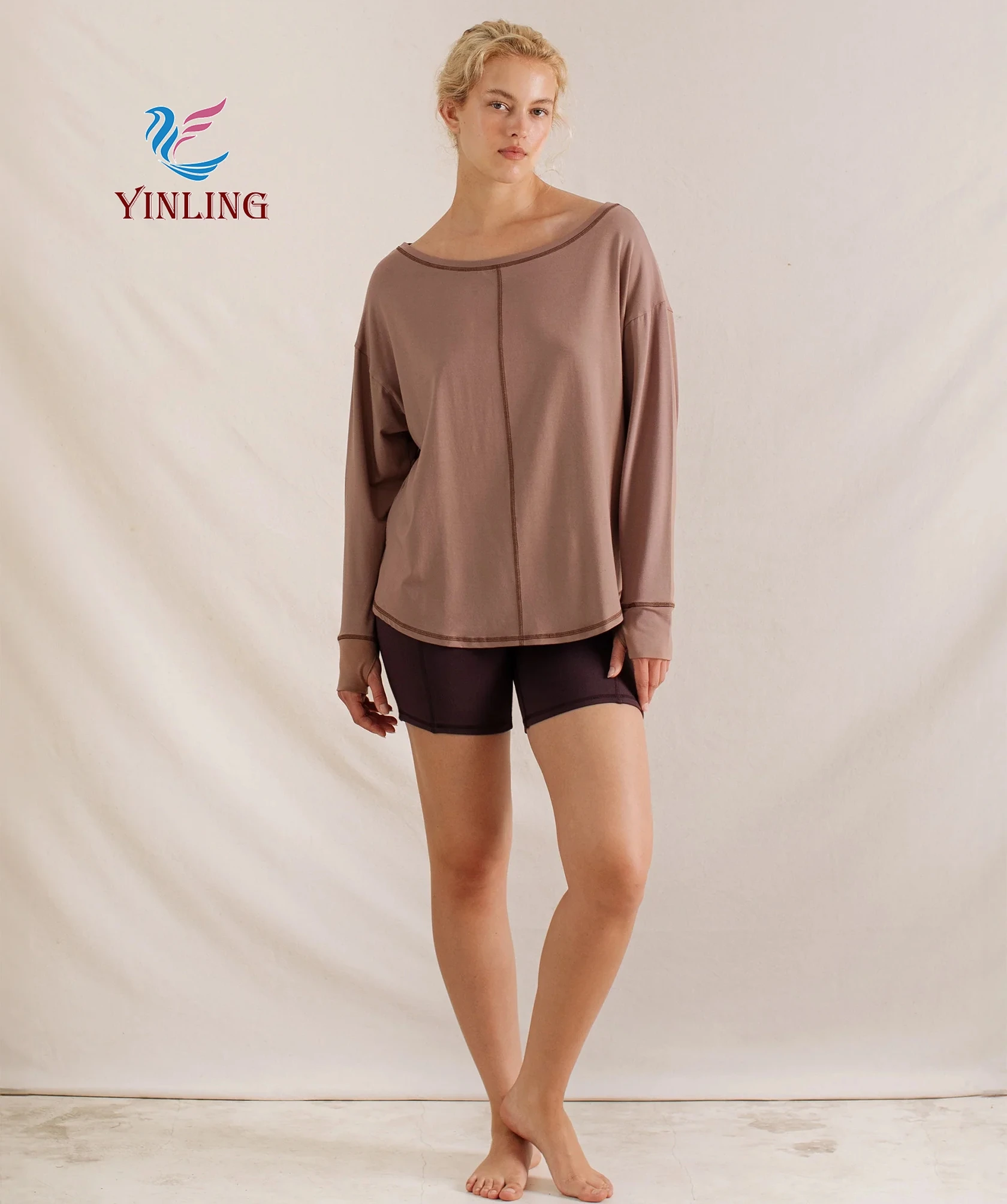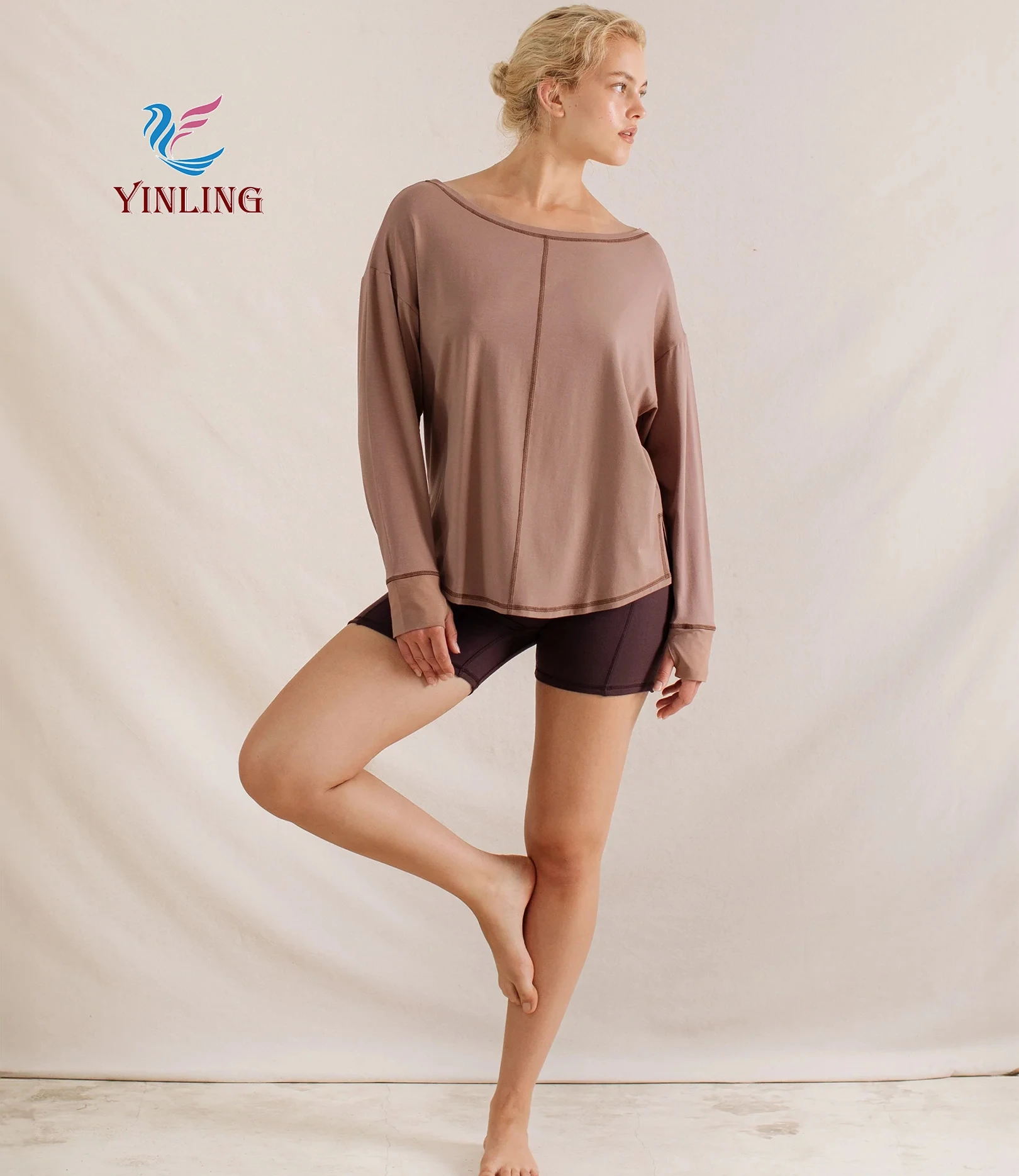 Women's Nude Feeling Long Sleeve Casual Outdoor Sports T-shirt Autumn Moisture-wicking Side Scrunch Drawstring Fitness Sets