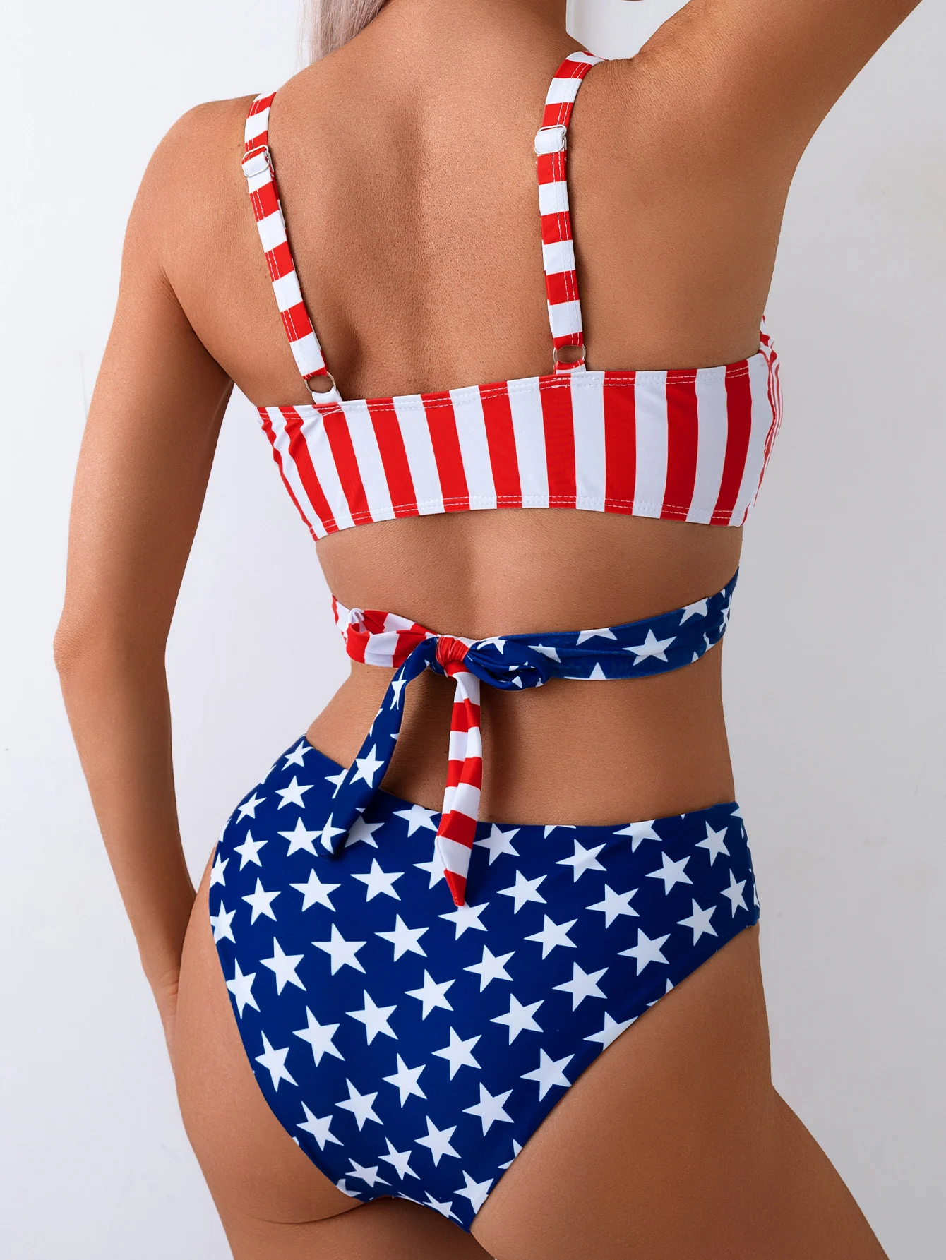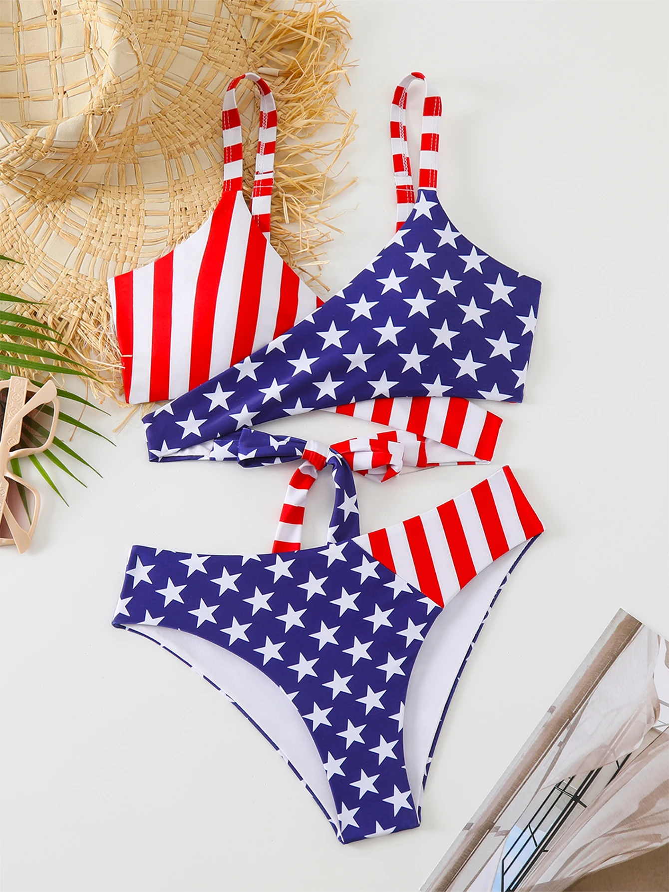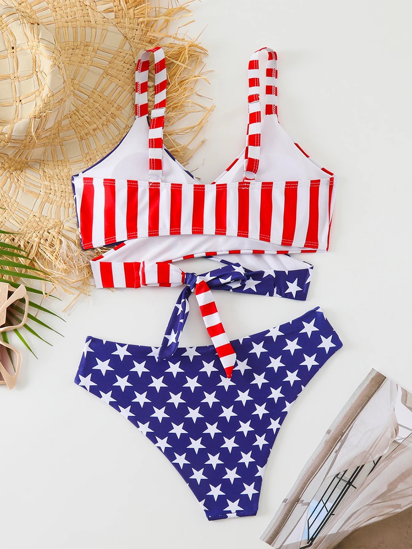 Factory Custom New Sexy Star Print Two Piece Bikini Triangle Front Cross Swimsuit Women High Waist Thong Swimwear