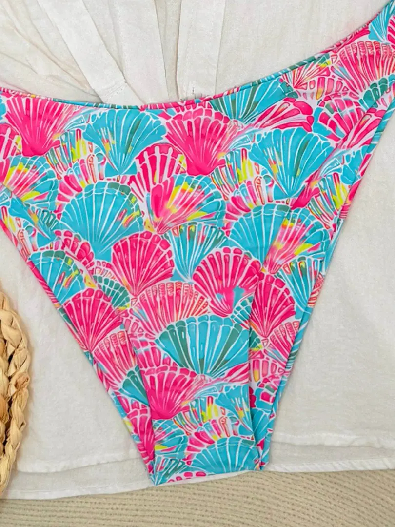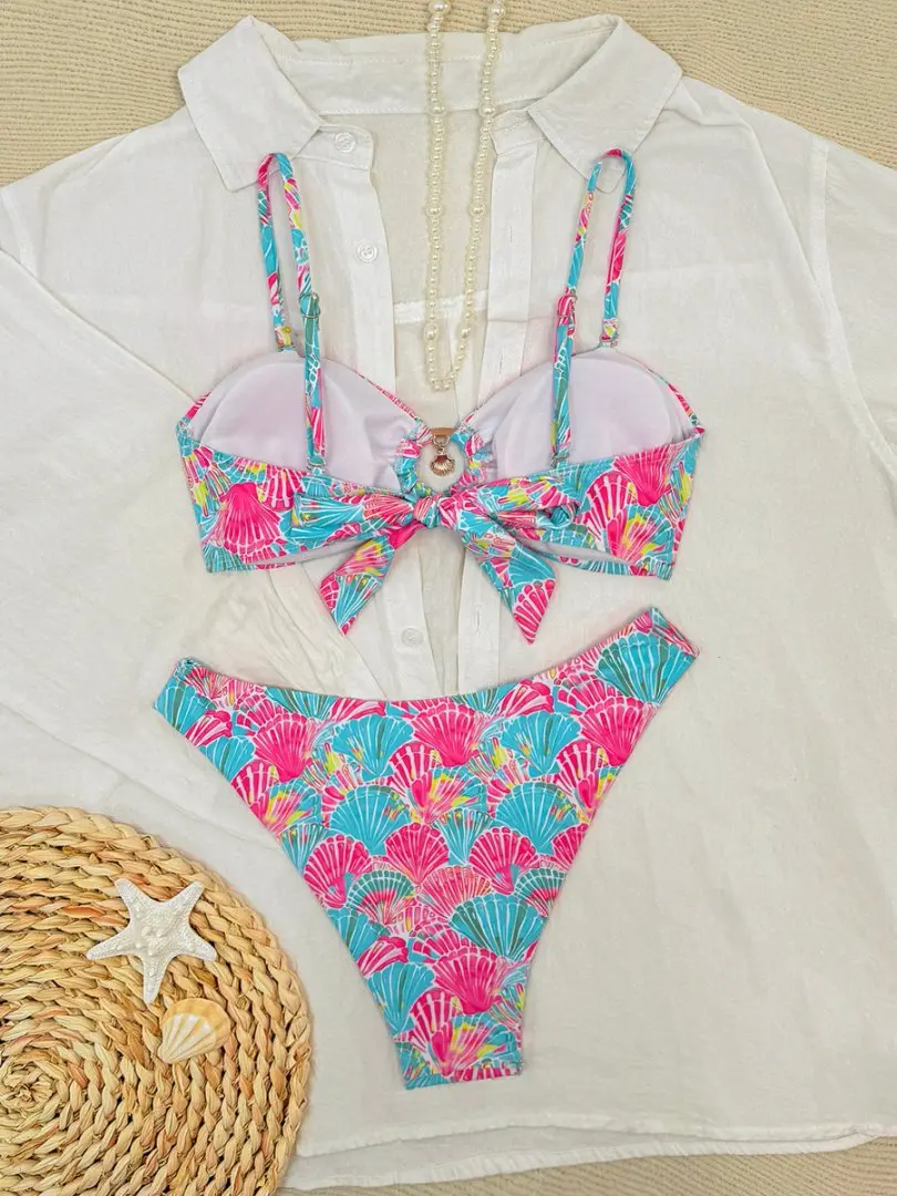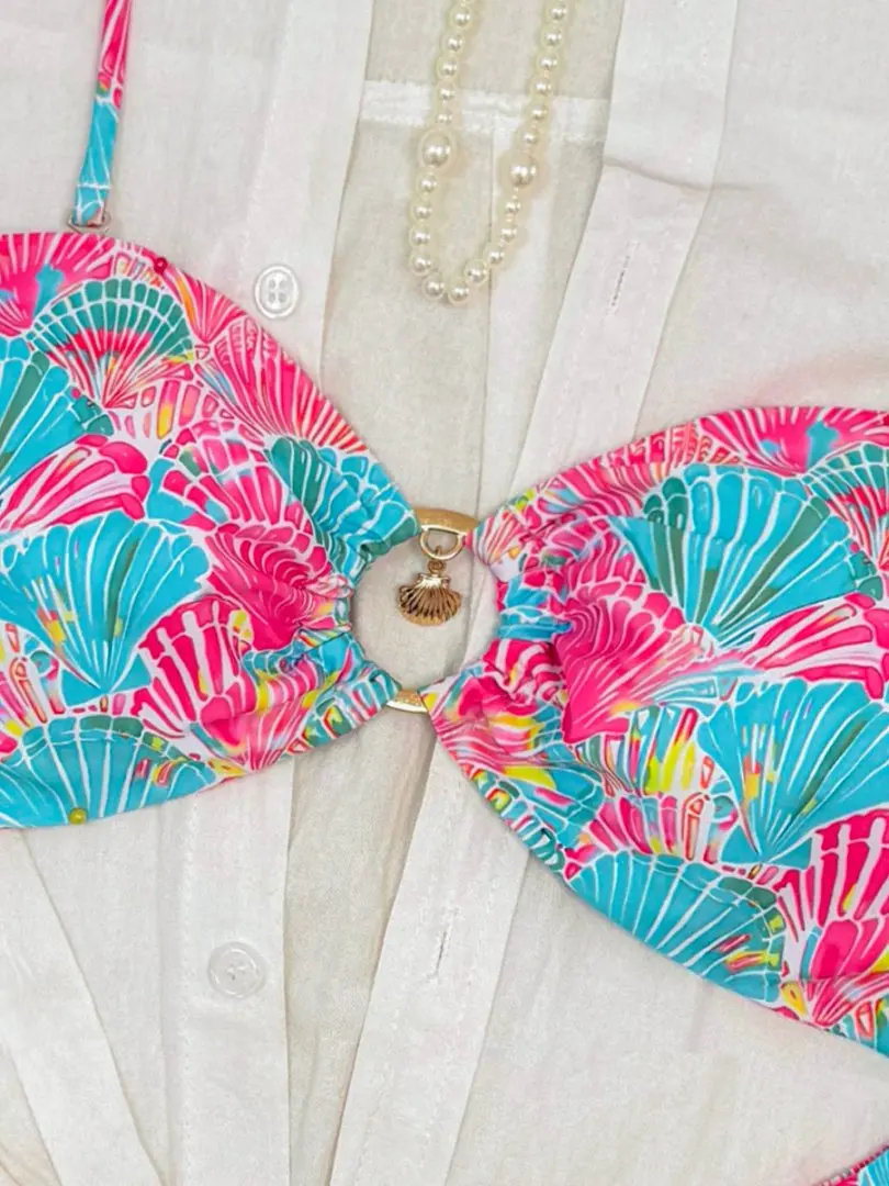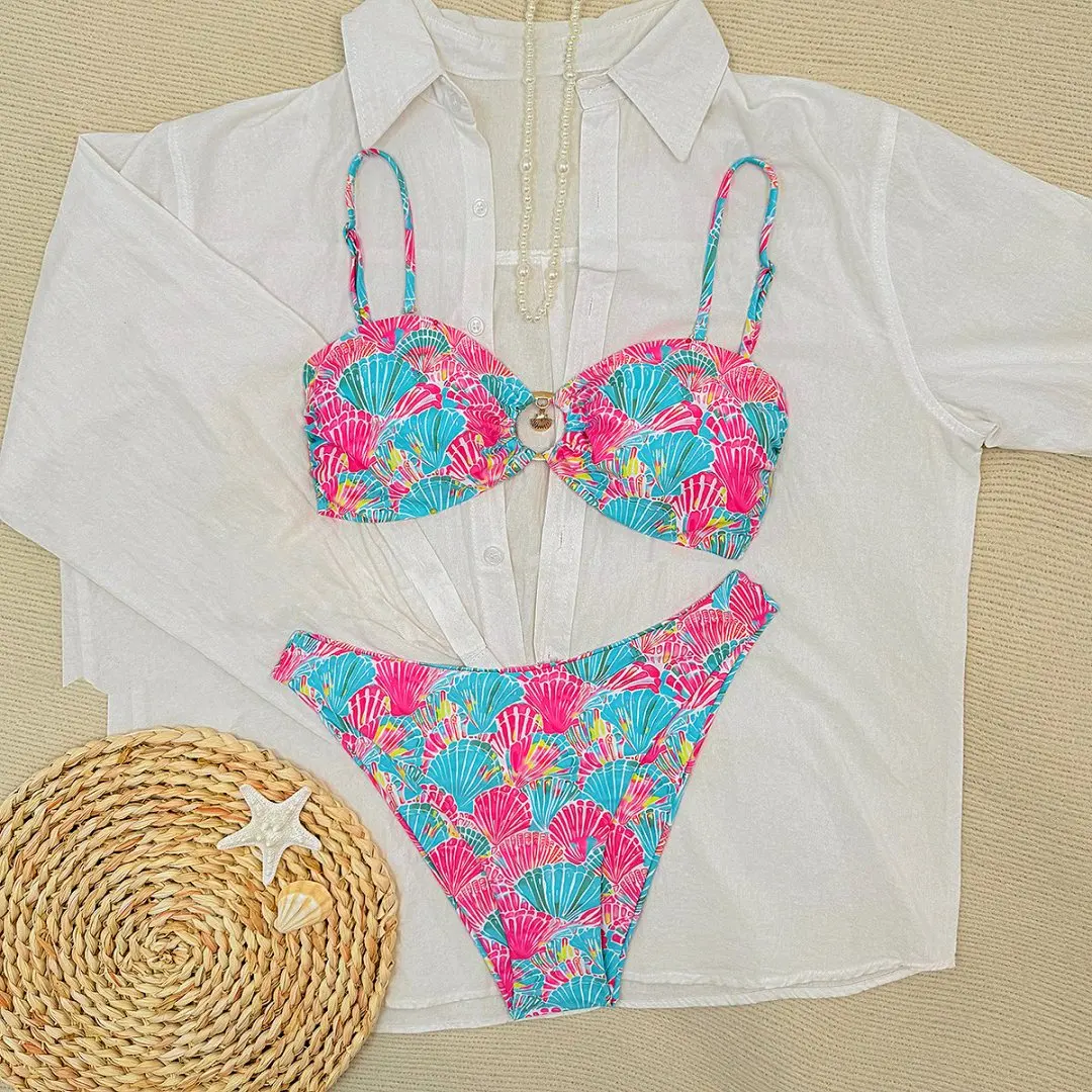 Custom 2026 New Ring Sexy Print Metal Shell Two Piece Bikini Set Triangle Halter Swimsuit Women Thong Swimwear