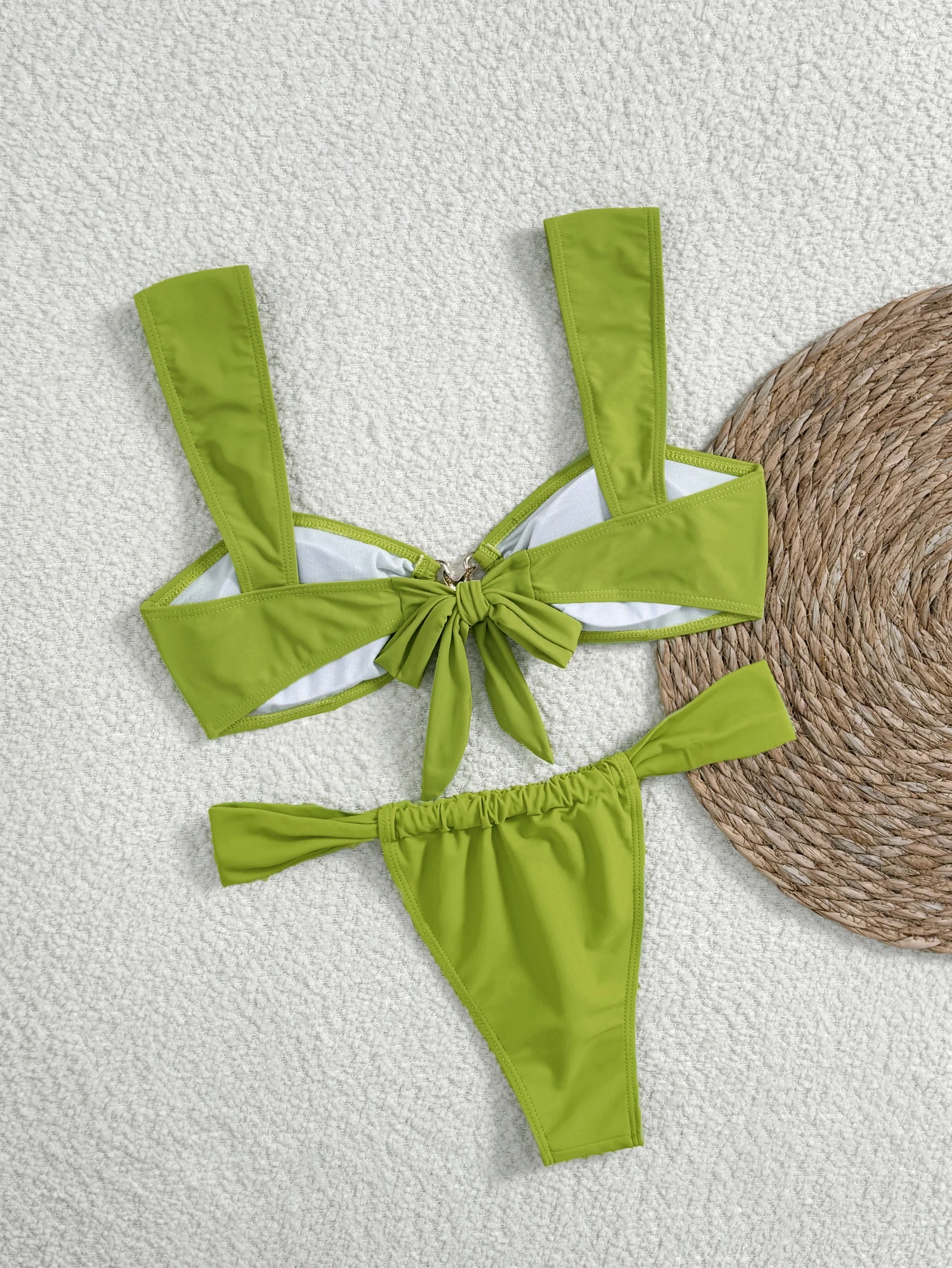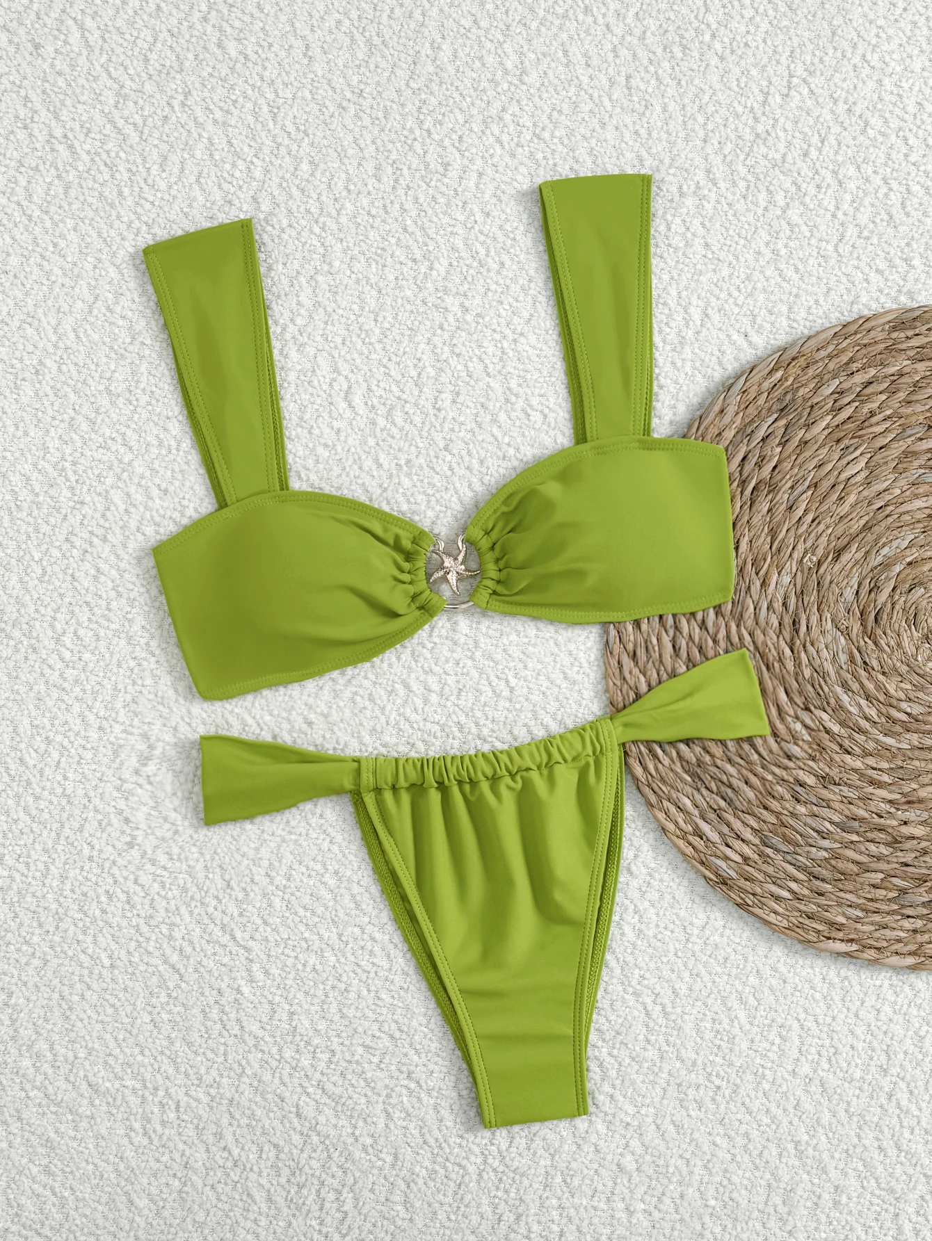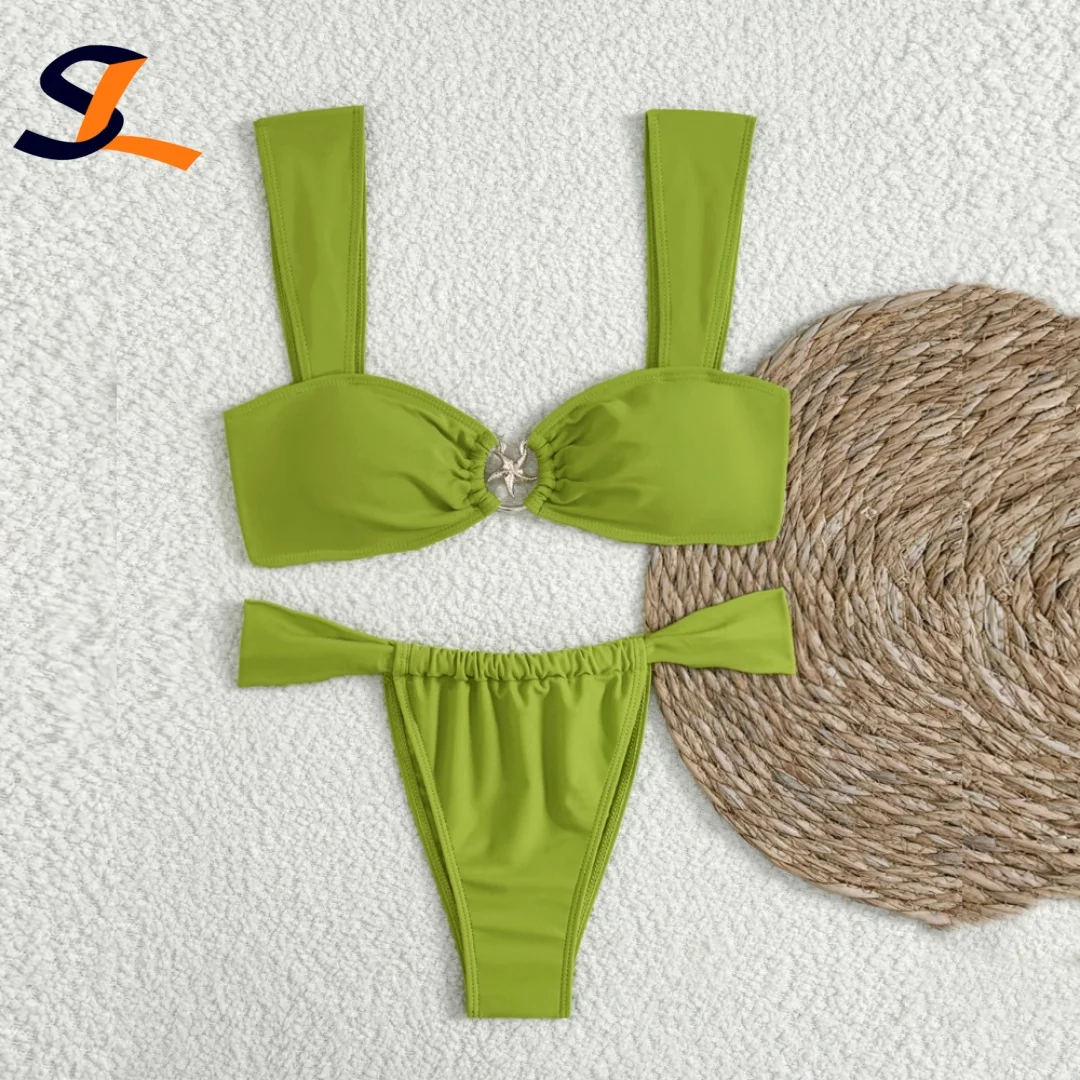 Factory Custom New Sexy Solid Metal Star Two Piece Bikini Bandeau Swimsuit Women Thong Swimwear