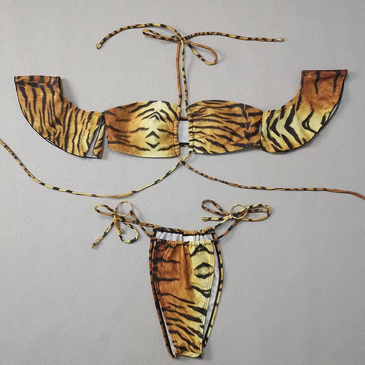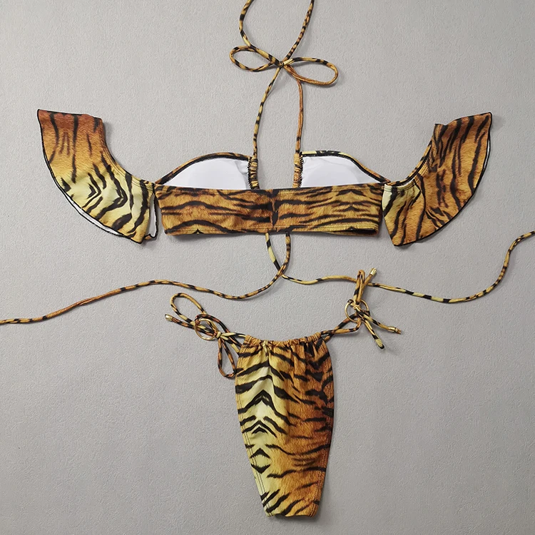 MLY Ruffle Bikini Summer Two Piece Suit Sexy Swimwear Bandage Biquini Triangle Swimsuit Printed Bathsuit