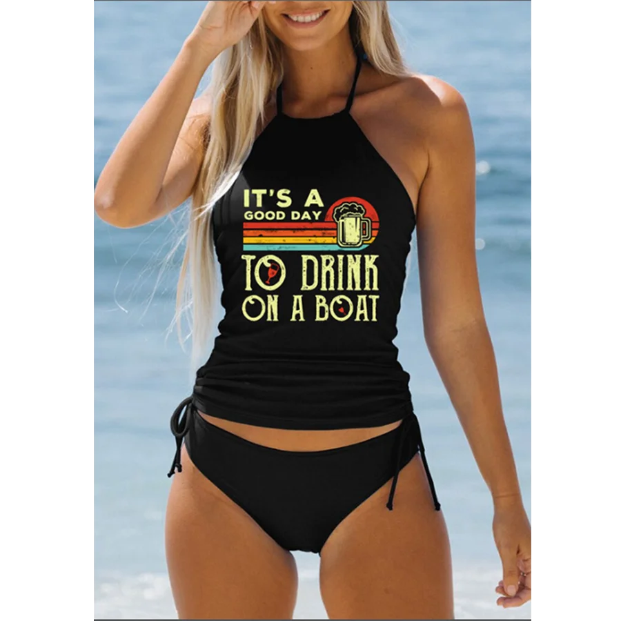 OEM 2026 New Design Hot Sale Print Sexy Two Piece Bikini Beachwear High Neck Halter Tank Swimsuit Women Thong Swimwear Tankini