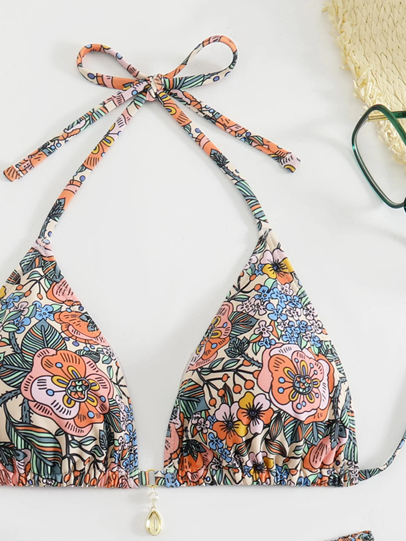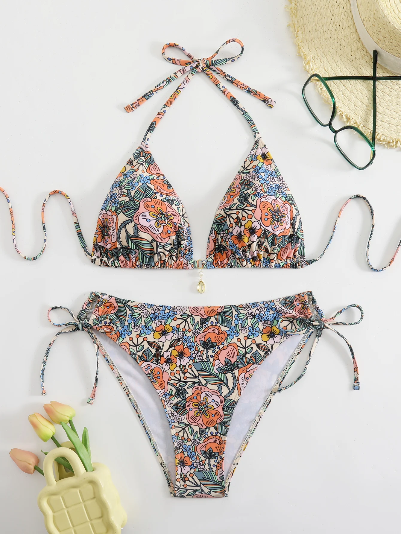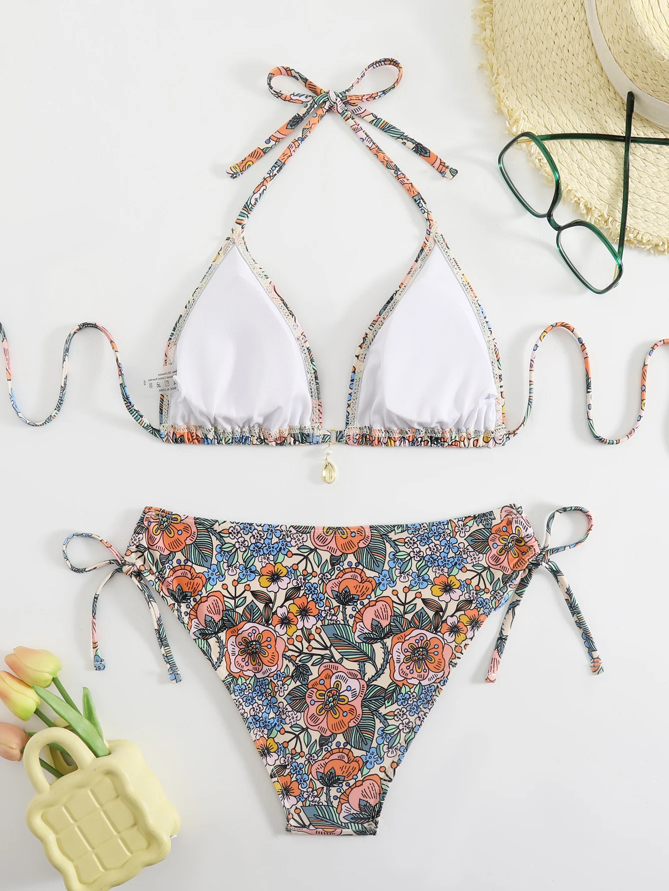MLY Ruffle Bikini Summer Two Piece Suit Sexy Swimwear Bandage Biquini Triangle Swimsuit Printed Bathsuit