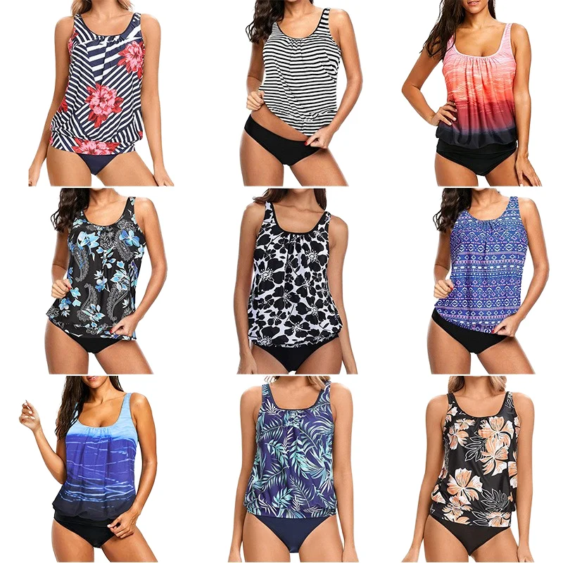 Custom 2026 New Tends Sexy Print Two Piece Bikini Beachwear V Neck Swimsuit Women Conservative Swimwear Tankini