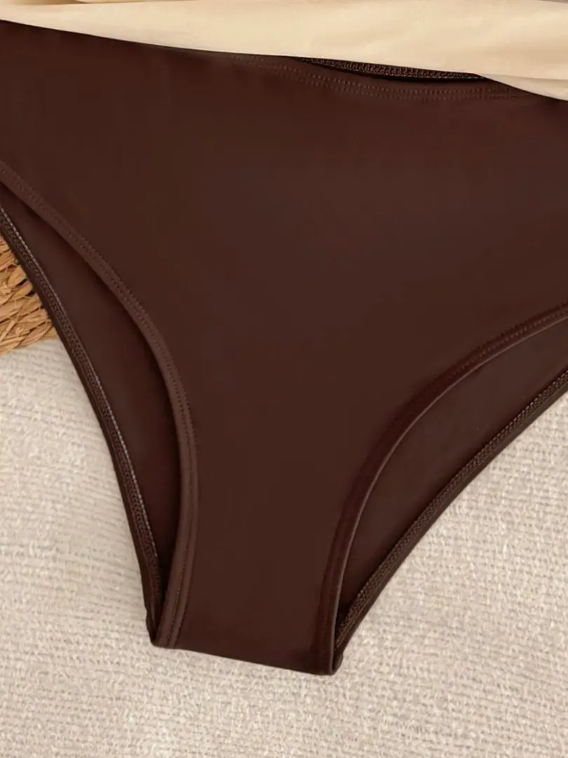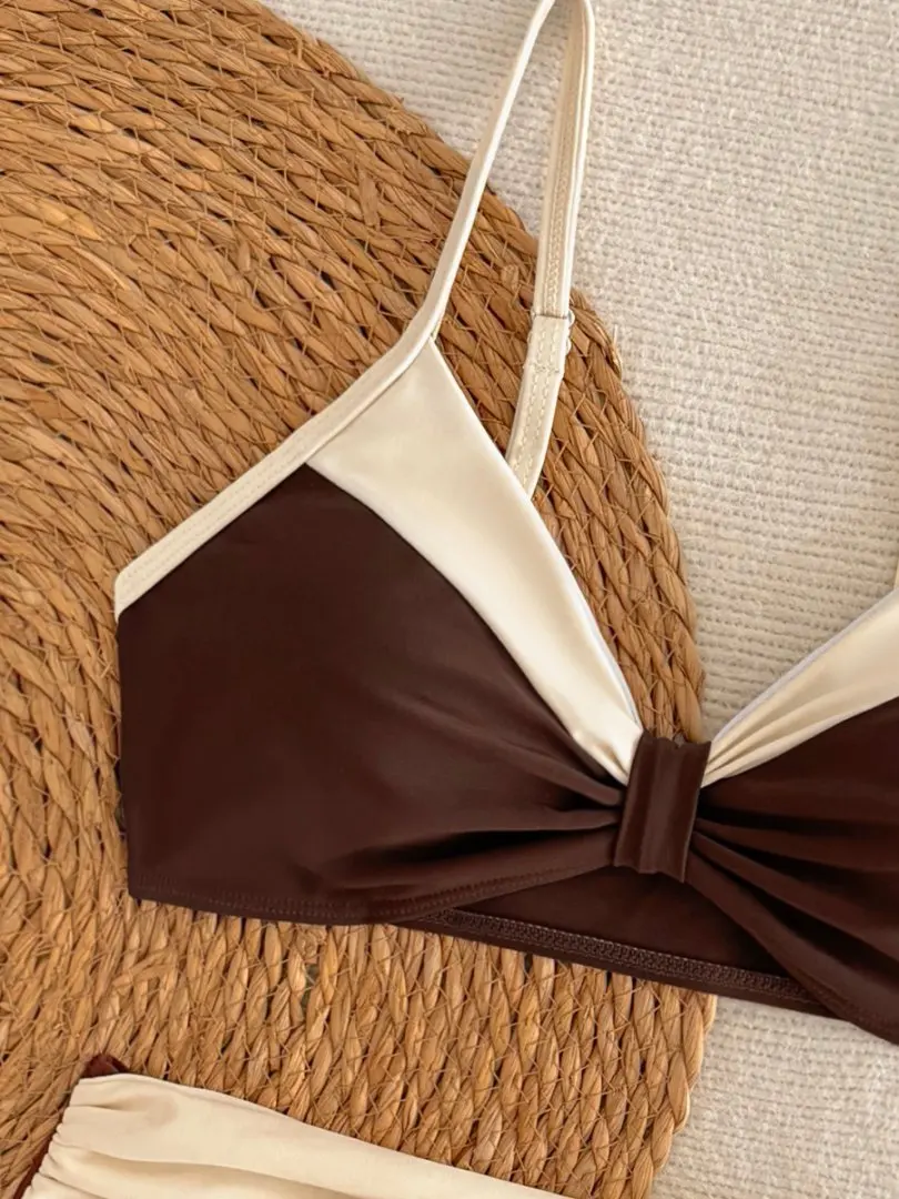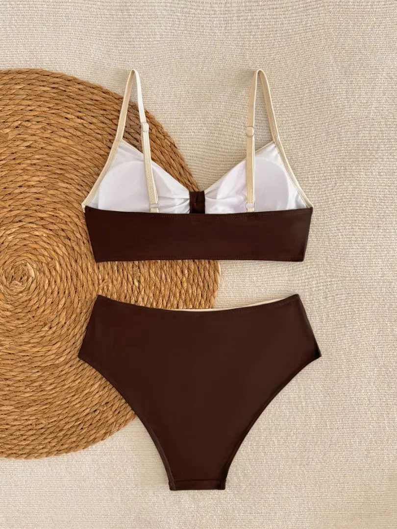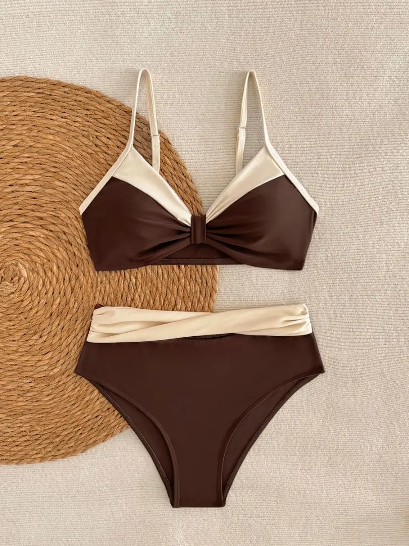 Wholesale Custom New Sexy Solid Patchwork Two Piece Bikini Set Triangle Tie Swimsuit Women High Waist Thong Swimwear
