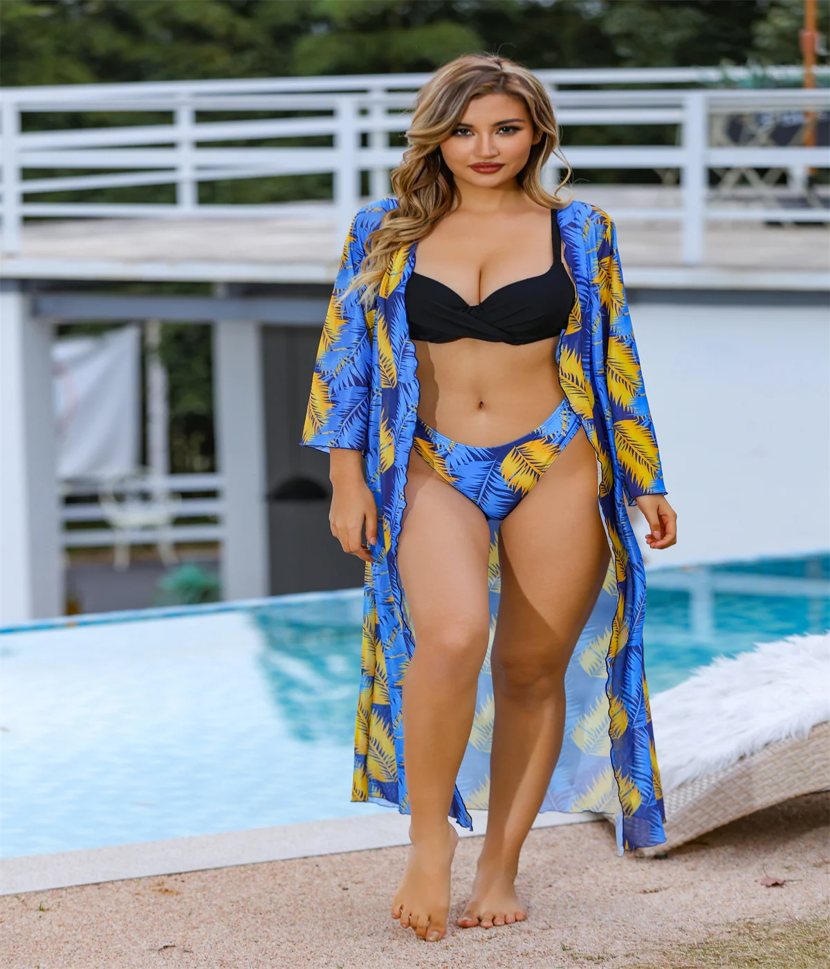 OEM New Sexy 3 Piece Bikini Beachwear With Mesh Cover up Triangle Swimsuit Women Thong Swimwear