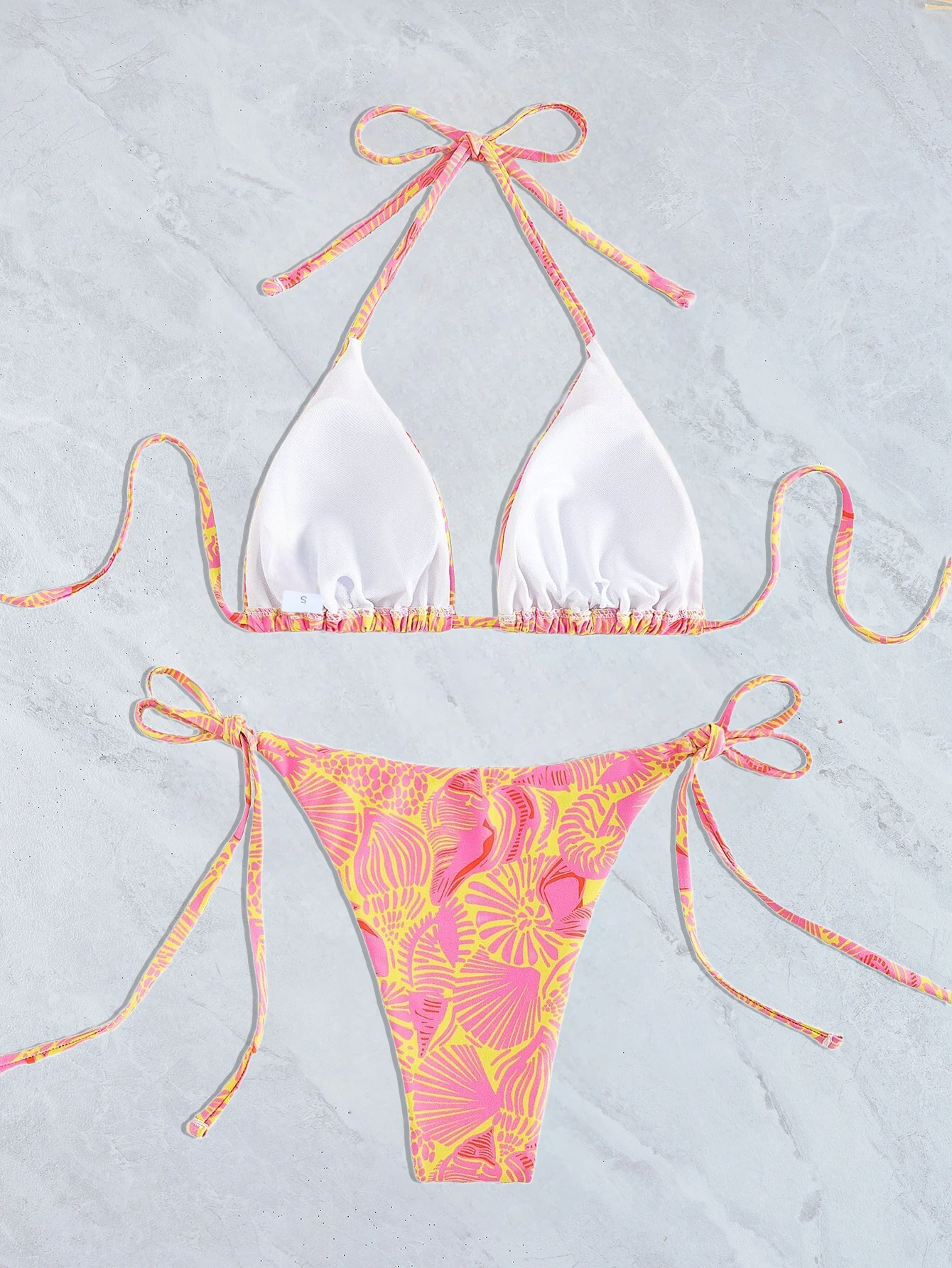 OEM Custom New In Stock Sexy Print Two Piece Bikini Set Beachwear Triangle Swimsuit Women Side Tie Thong Swimwear