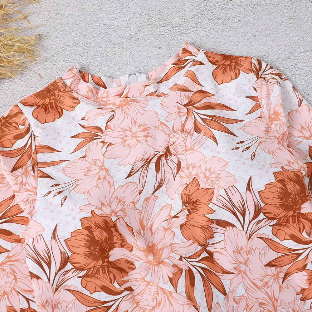 Custom New Free Samples Sexy Print One Piece Bikini Beachwear Long Sleeve Surfing Swimsuit Women Back Zipper High Cut Swimwear