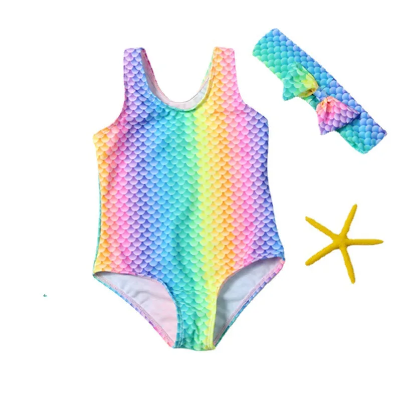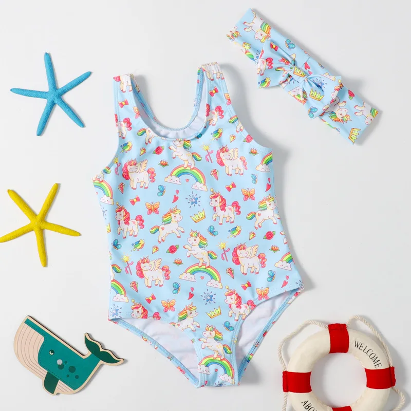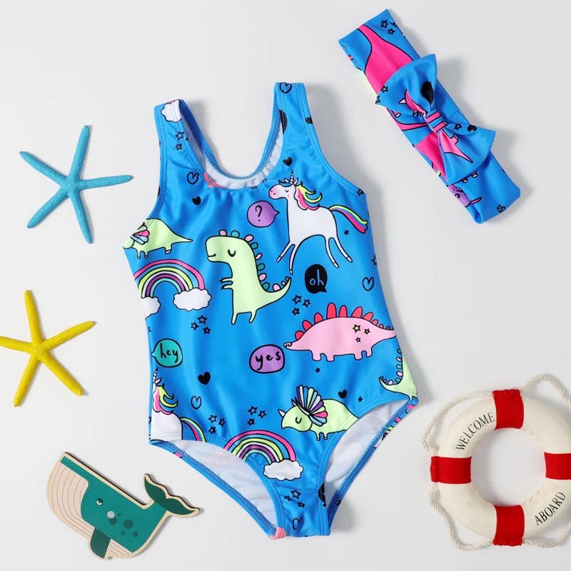 Factory Custom New Cute Kids One Piece Bikini With Hair Band Girl Swimsuit Child Thong Swimwear