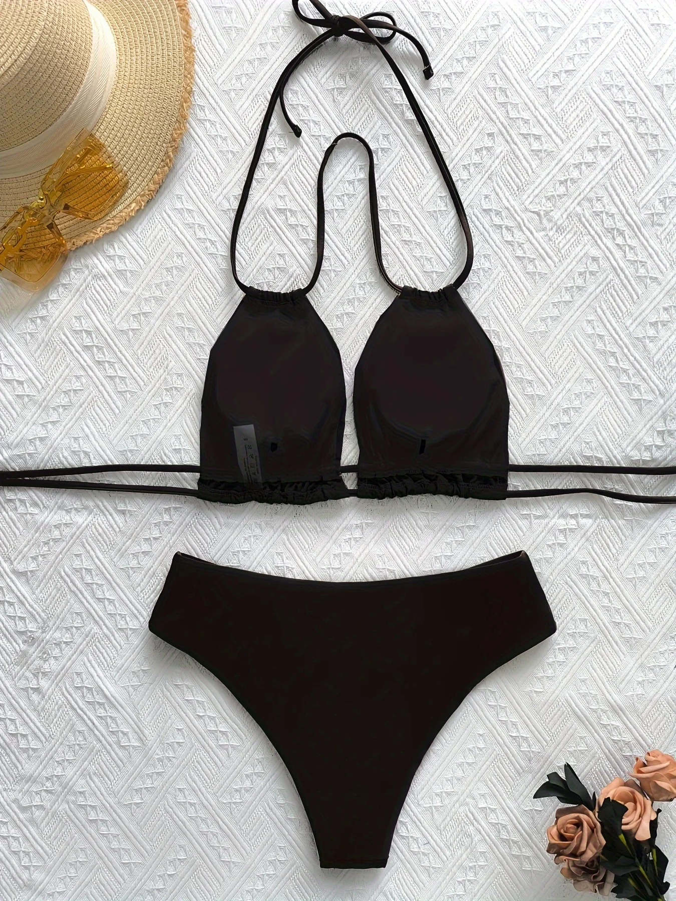 Manufacturer Custom 2026 New Sexy Solid Black Two Piece Bikini Beachwear Triangle Swimsuit Women Swimwear