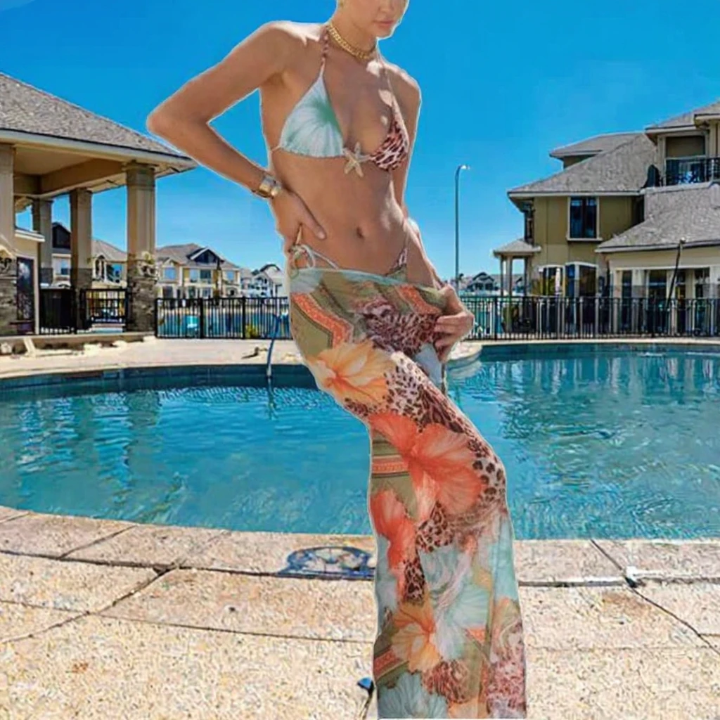 MLY Ruffle Bikini Summer Two Piece Suit Sexy Swimwear Bandage Biquini Triangle Swimsuit Printed Bathsuit