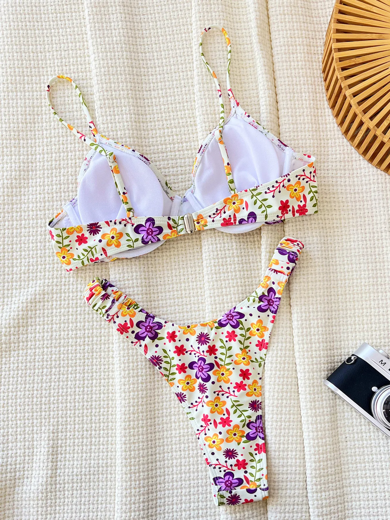 MLY Ruffle Bikini Summer Two Piece Suit Sexy Swimwear Bandage Biquini Triangle Swimsuit Printed Bathsuit