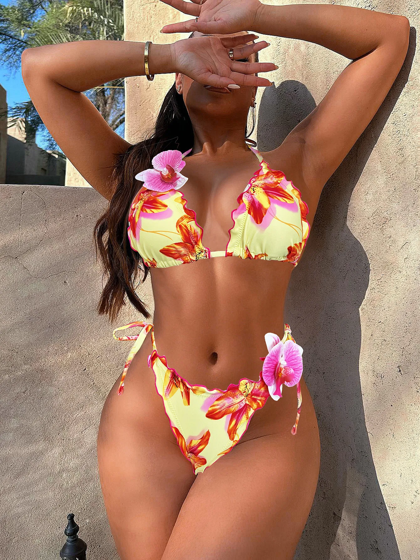 MLY Ruffle Bikini Summer Two Piece Suit Sexy Swimwear Bandage Biquini Triangle Swimsuit Printed Bathsuit