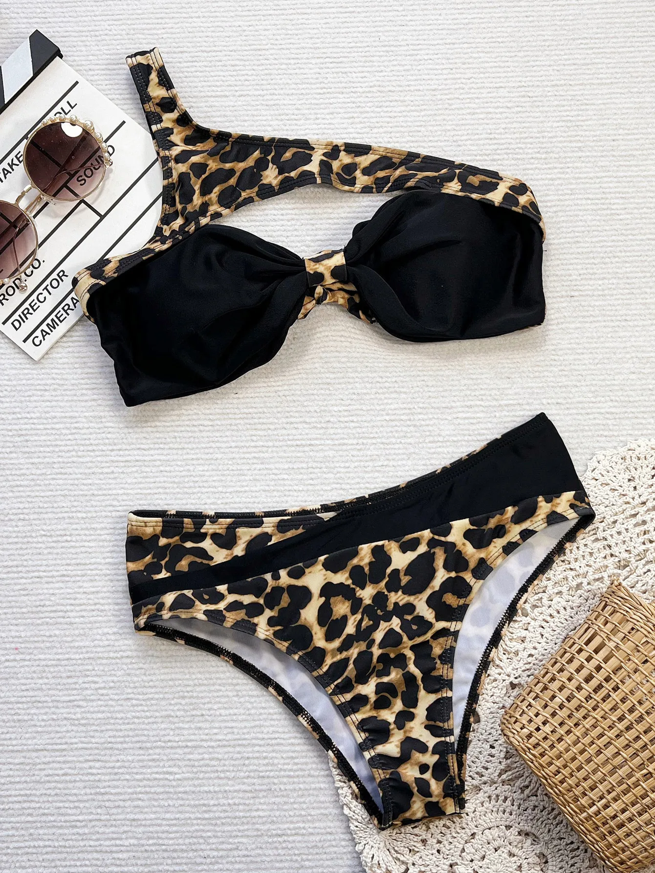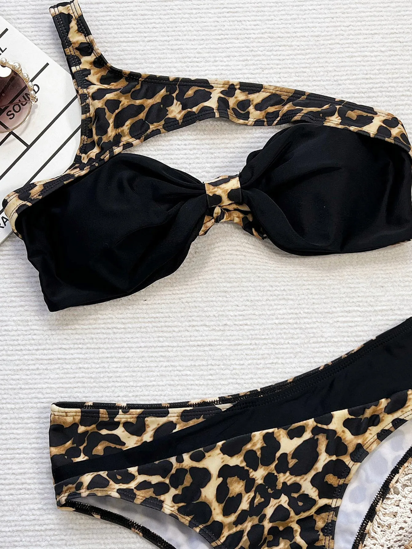 Custom Sexy Leopard Color Two Piece Bikini Set Beachwear Tie Back Swimwear
