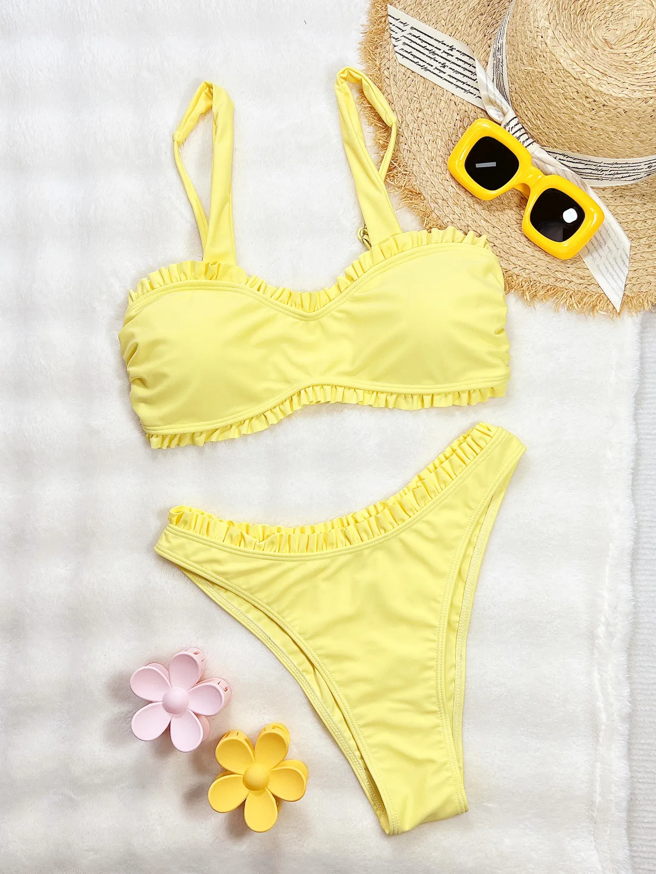 MLY Ruffle Bikini Summer Two Piece Suit Sexy Swimwear Bandage Biquini Triangle Swimsuit Printed Bathsuit