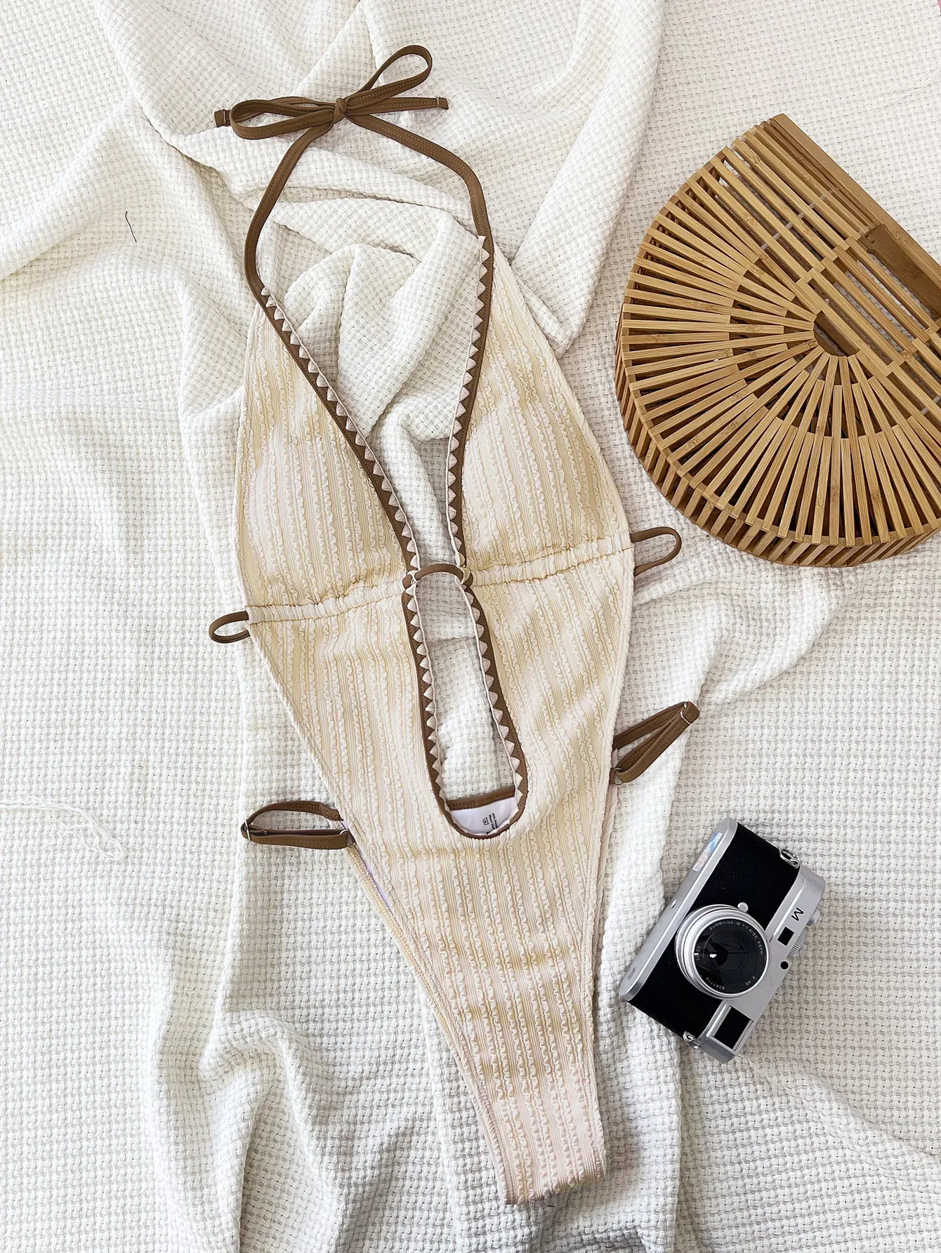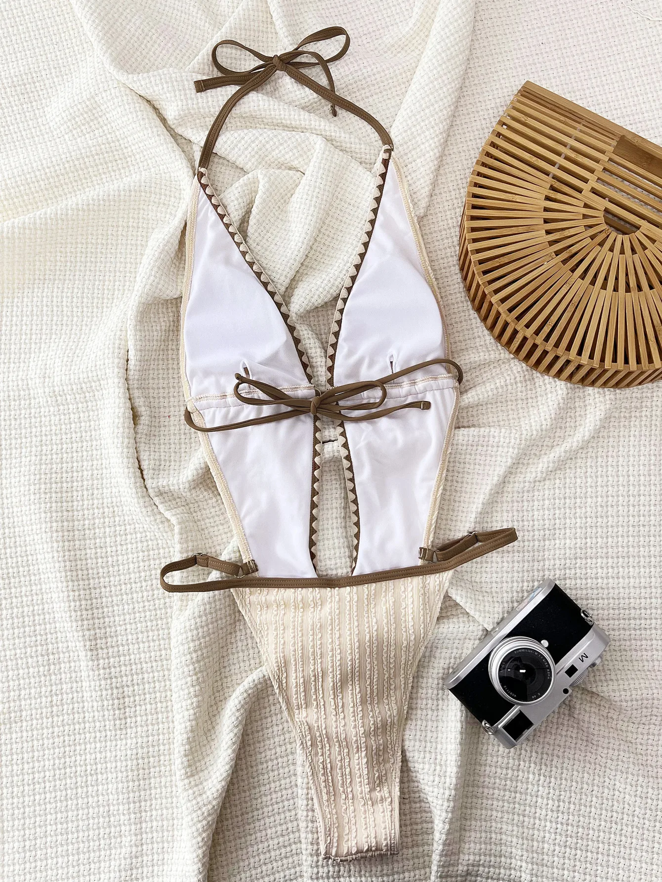 Summer One Piece Swimsuit for Women Solid Color Hollow Swimsuit
