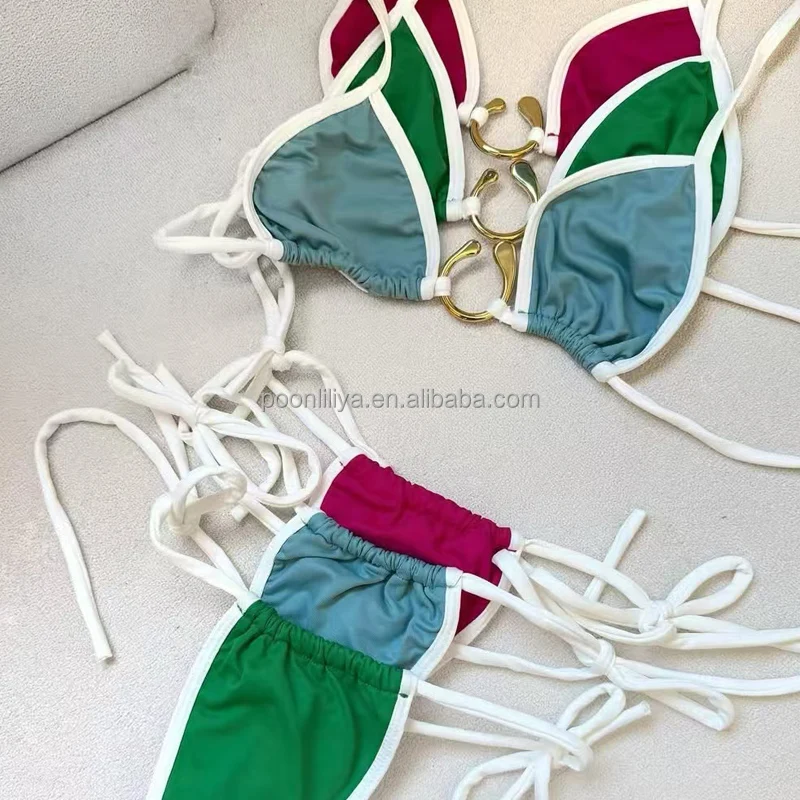 2026 New Custom Sexy Fat Young Girls Micro White Brazilian String Thong Bikini Set Letter Print Breathable Eco-Friendly