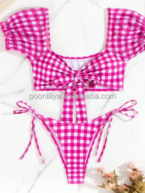 Luxury Eco-Friendly Plus Size Women's Bikini Set Swimwear Two Piece Crop Top with Tie Side Bottom Spandex/Polyester