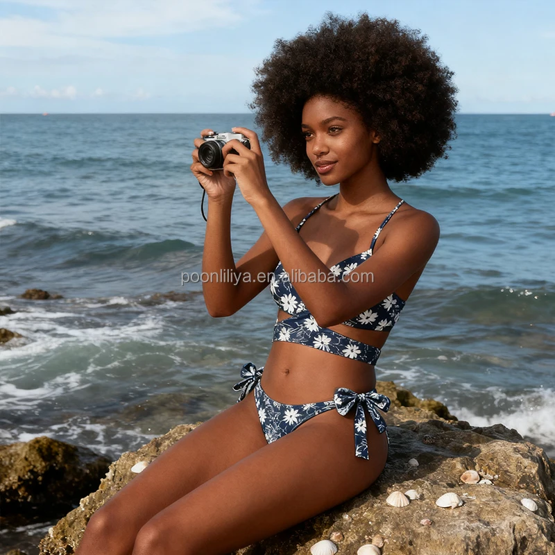 MLY Ruffle Bikini Summer Two Piece Suit Sexy Swimwear Bandage Biquini Triangle Swimsuit Printed Bathsuit