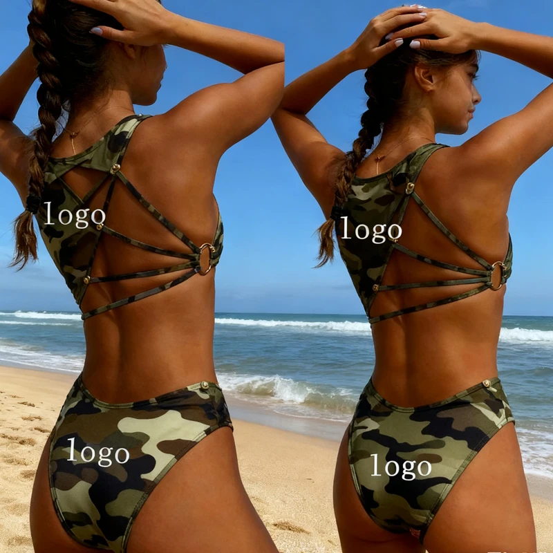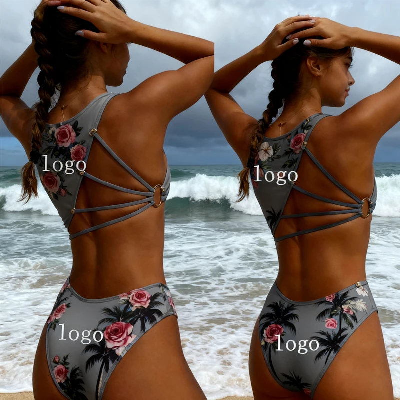 MLY Factory Wholesale Bikini Custom Sexy Bodysuit Jumpsuit Beachwear Backless Striped Print One Piece Swimwear