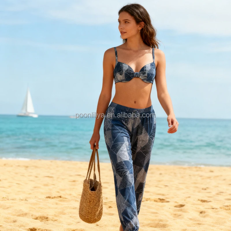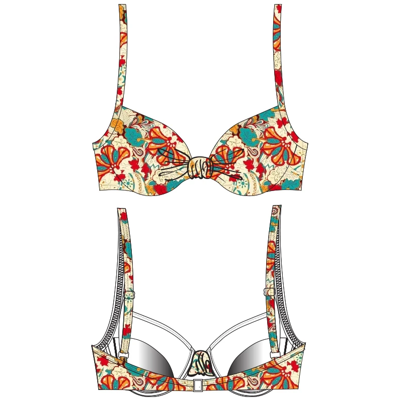 2026 Custom Recycled Print Fabric Cheeky Coverage Bikini High Quality Backless Underwire Push Style Swimwear with Wide Straps