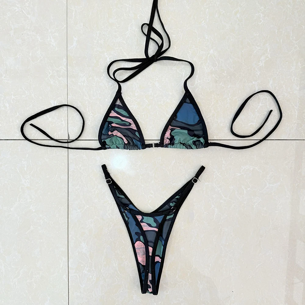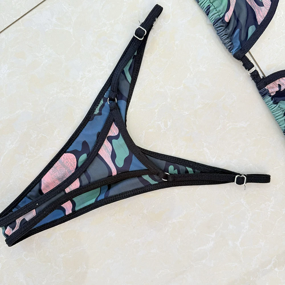 MLY Ruffle Bikini Summer Two Piece Suit Sexy Swimwear Bandage Biquini Triangle Swimsuit Printed Bathsuit
