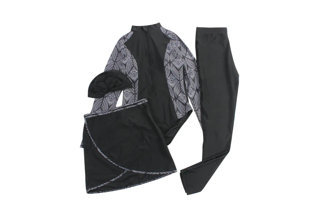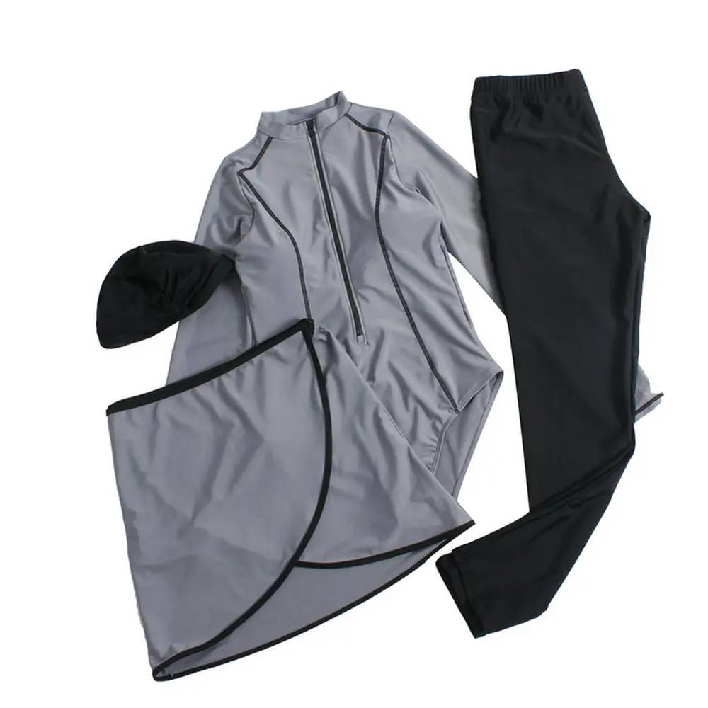 Women's Modest Islamic One-Piece Swimwear Full Coverage Bathing Suit Push-Up Pants Sun Protection Hijab 4-Pcs Set Zipper Plus