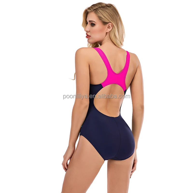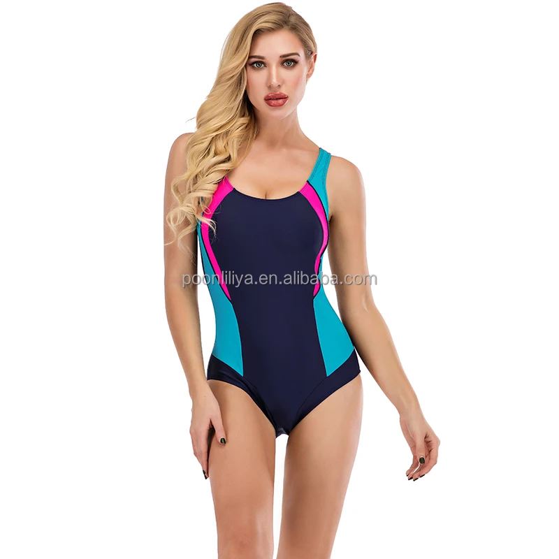 Lastic Tummy Control High Leg Patchwork Boat Neck and Racer Back Training Quarter Sports One Piece Swimwear for Women
