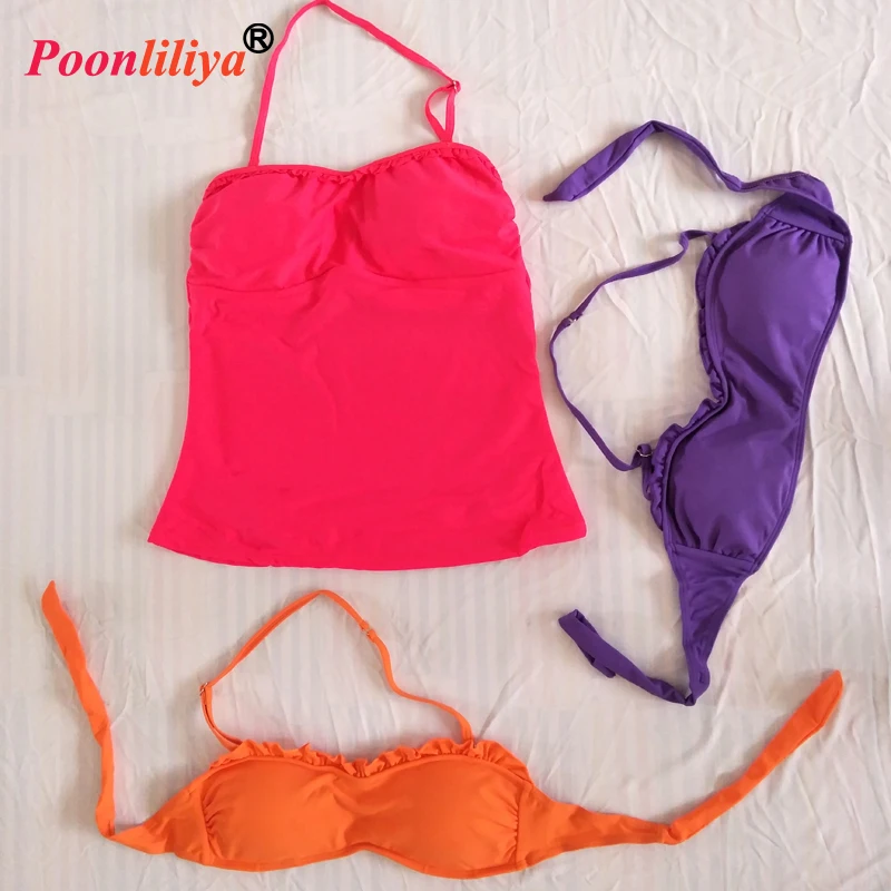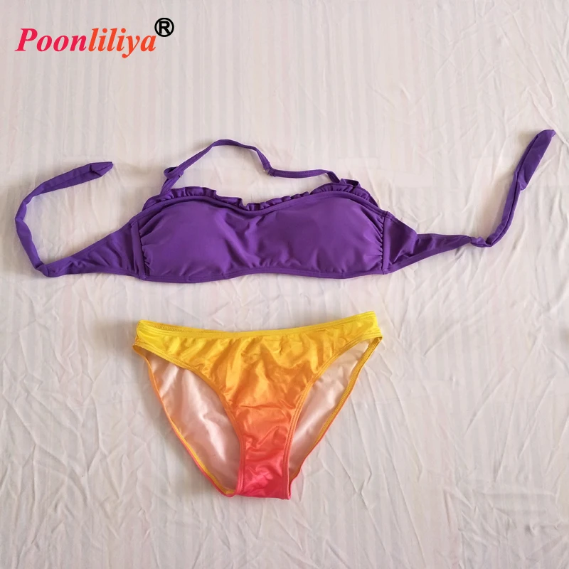 Factory Direct Custom Printed Bandeau Ruffle Tie-Dye Bikini Quick Dry and Breathable Beachwear for Adults Solid Pattern