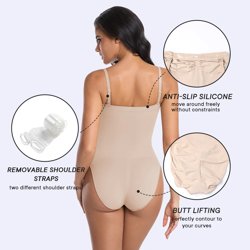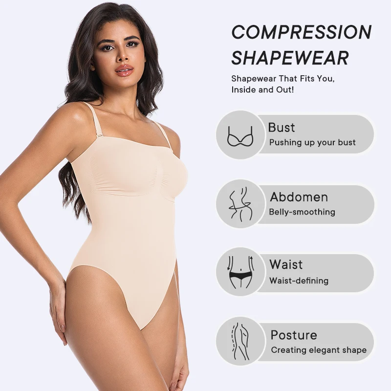 Strapless Shortie Bodysuit for Women Tummy Control Shapewear Seamless Body Shaper with Removable Straps