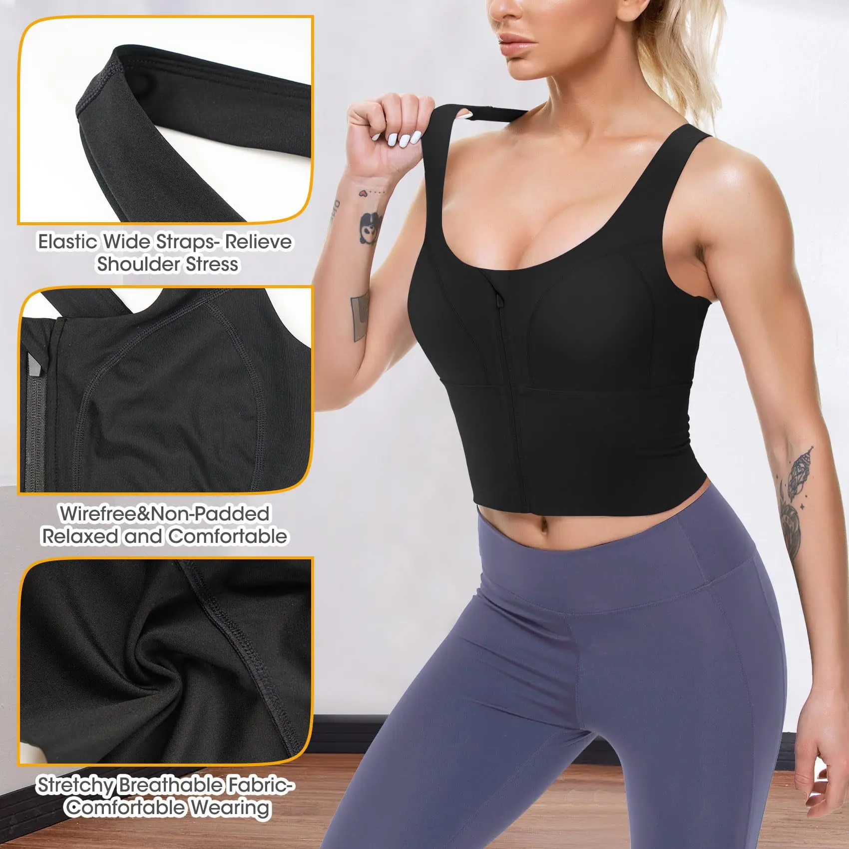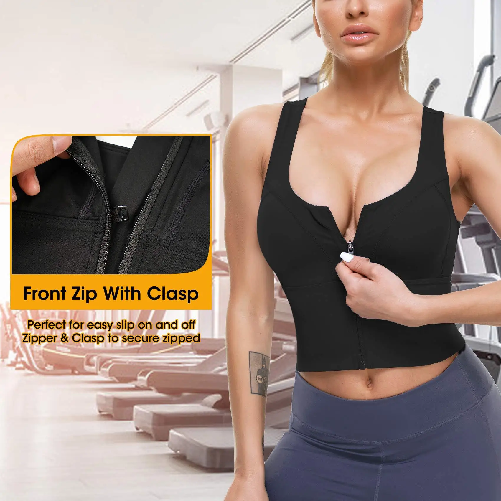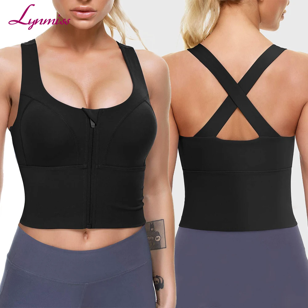Durable Ropa De Mujer Deportiva Buttery Soft U Neck Front Zipper Crisscross Straps Sports Bra Bodyshaper