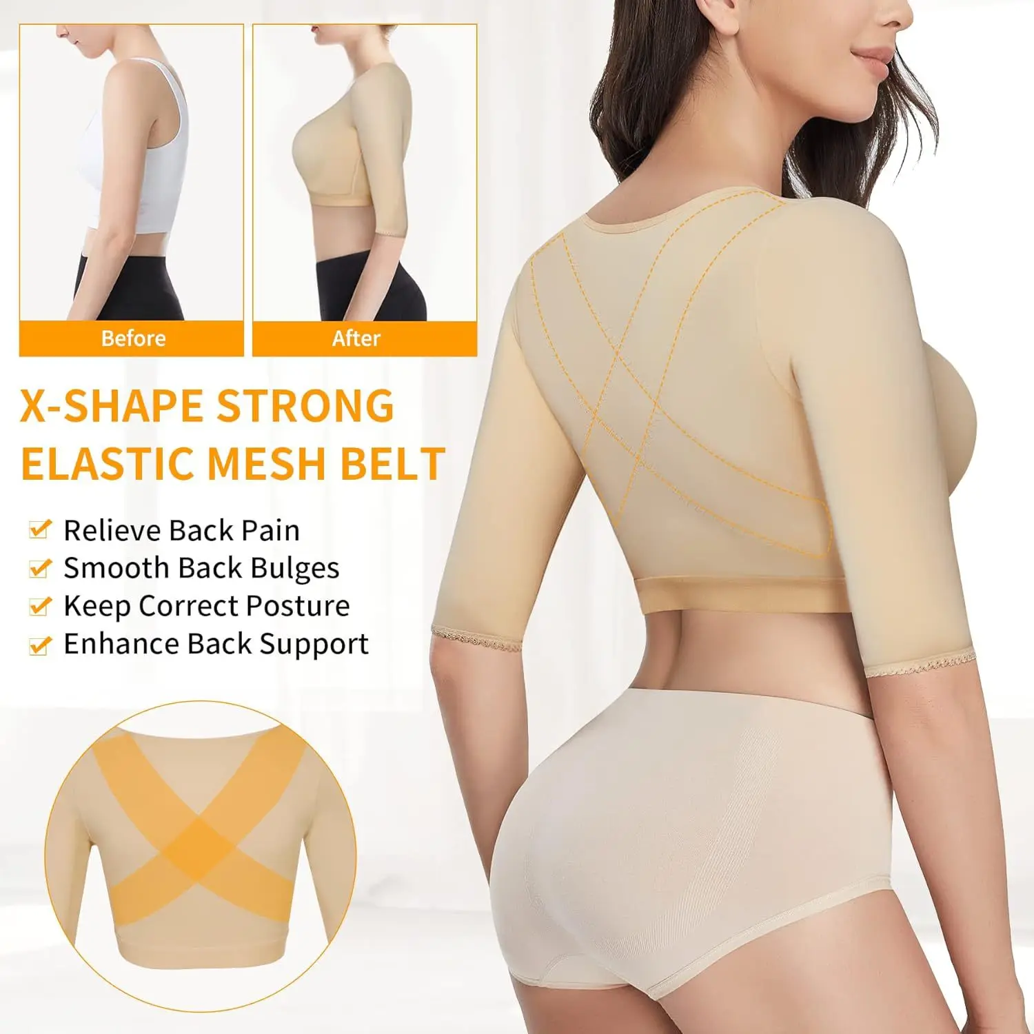 Women's Adjustable Elastic Pushup Girdle Breathable Breast Bra Shapewear with Arm Shaper Bragas Sin Costura Gaine Corset