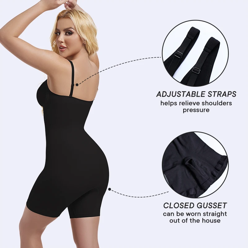 Seamless Zip Front Mid Thigh Bodysuit XS Firm Control Zipper Tummy Lounge Shapewear with Adjustable Strap Breathable