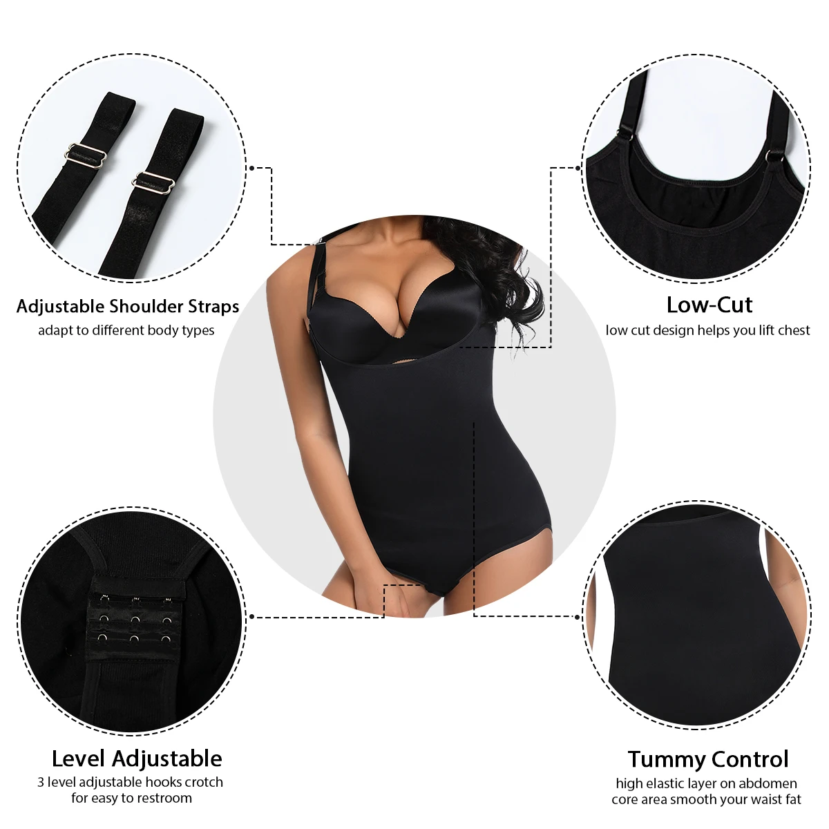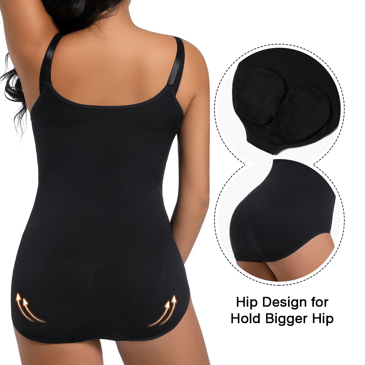 Seamless Backless Push up Bodysuit Strap Body Shaper Concealed Bra Straps Body Shapewear Black