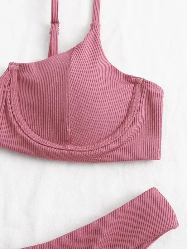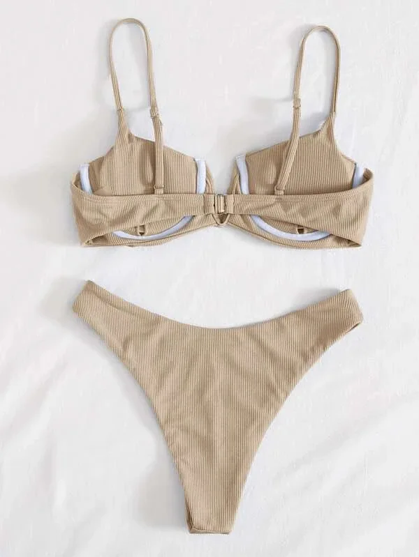 Sexy Ribbed Underwire Bikini 2 Layers Fabric Women Custom Logo Pink Adults Bikini Set Solid Bra Bikini