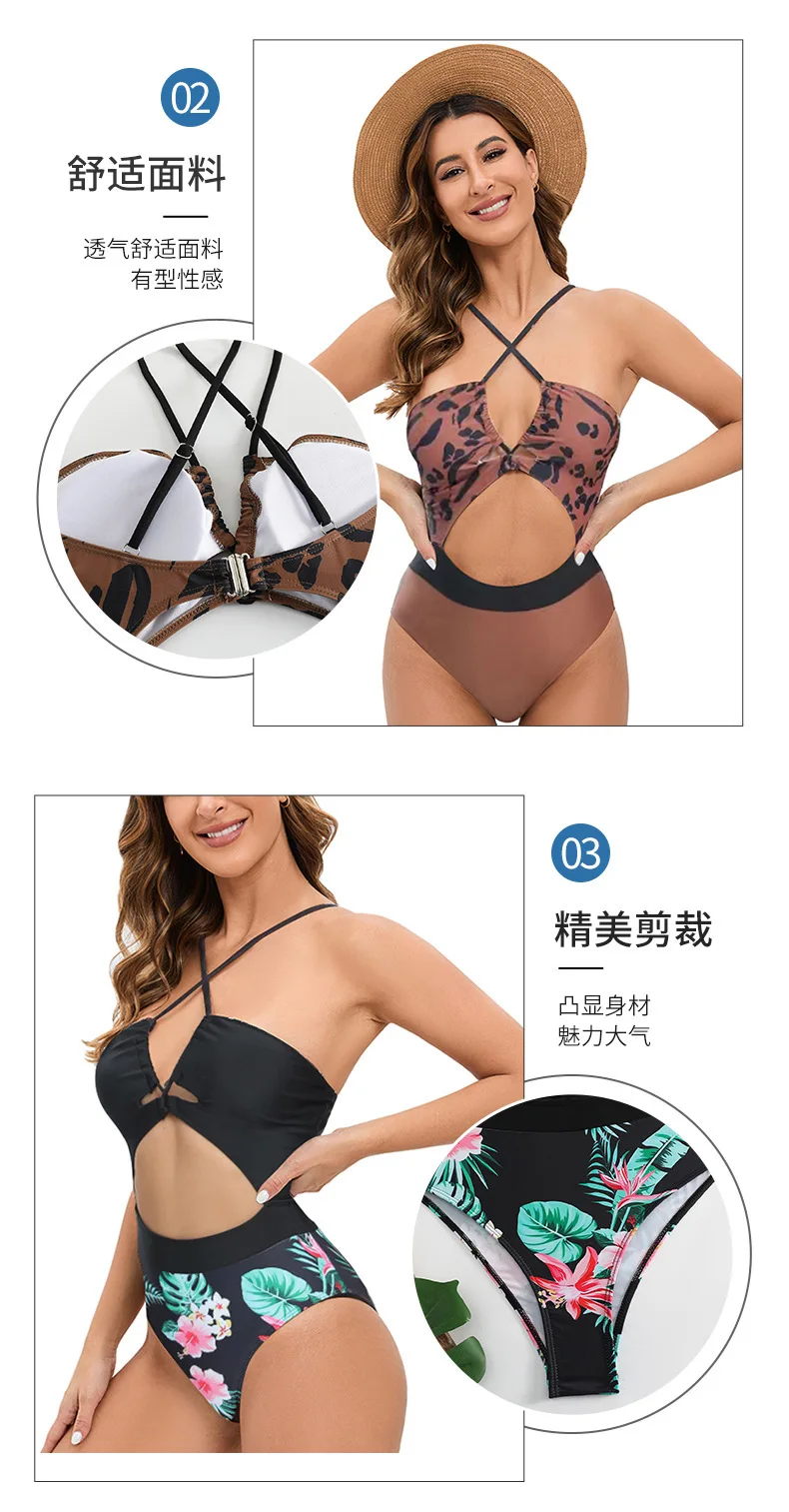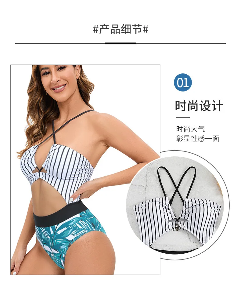 MLY Factory Wholesale Bikini Custom Sexy Bodysuit Jumpsuit Beachwear Backless Striped Print One Piece Swimwear