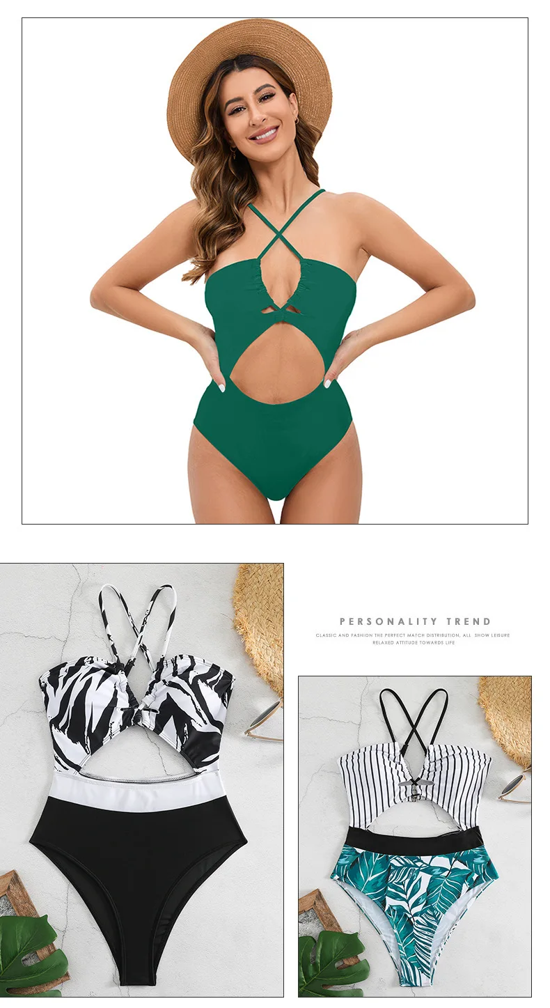 Ready Stock Crisscross Lady Swimsuit One Piece Swimwear Halter Neck Sexy Swimsuit for Women