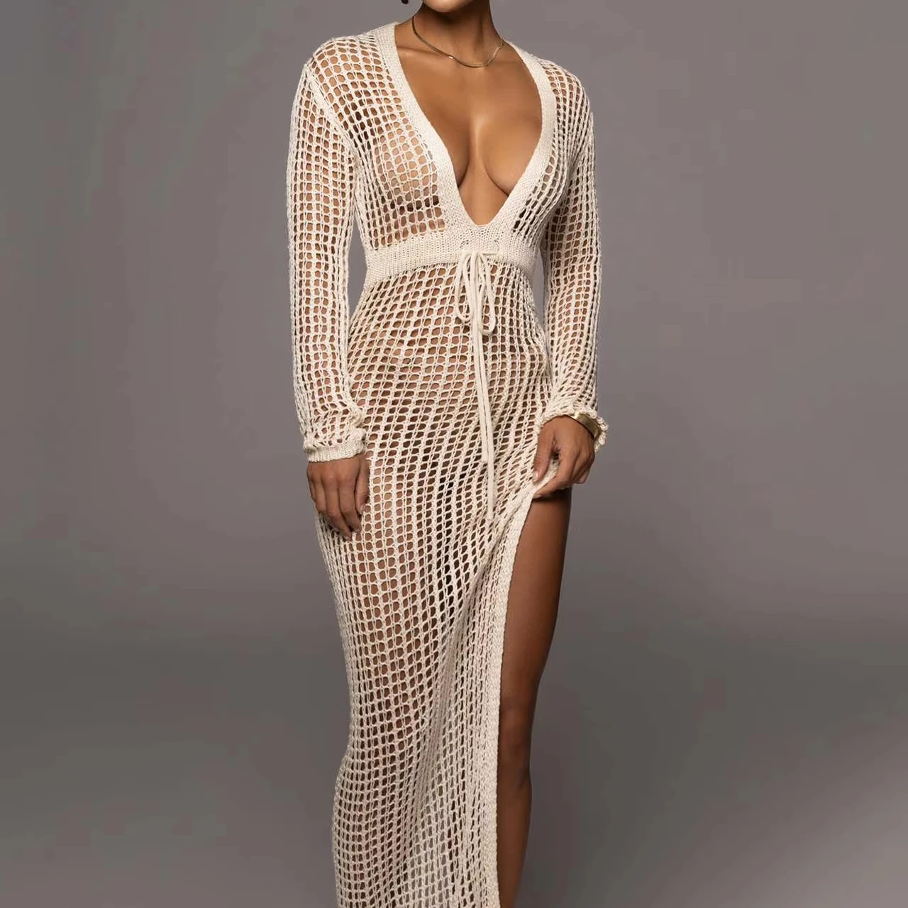 Long Sleeve Sexy Crochet Materiales Crochet Dress Crochet Clothing