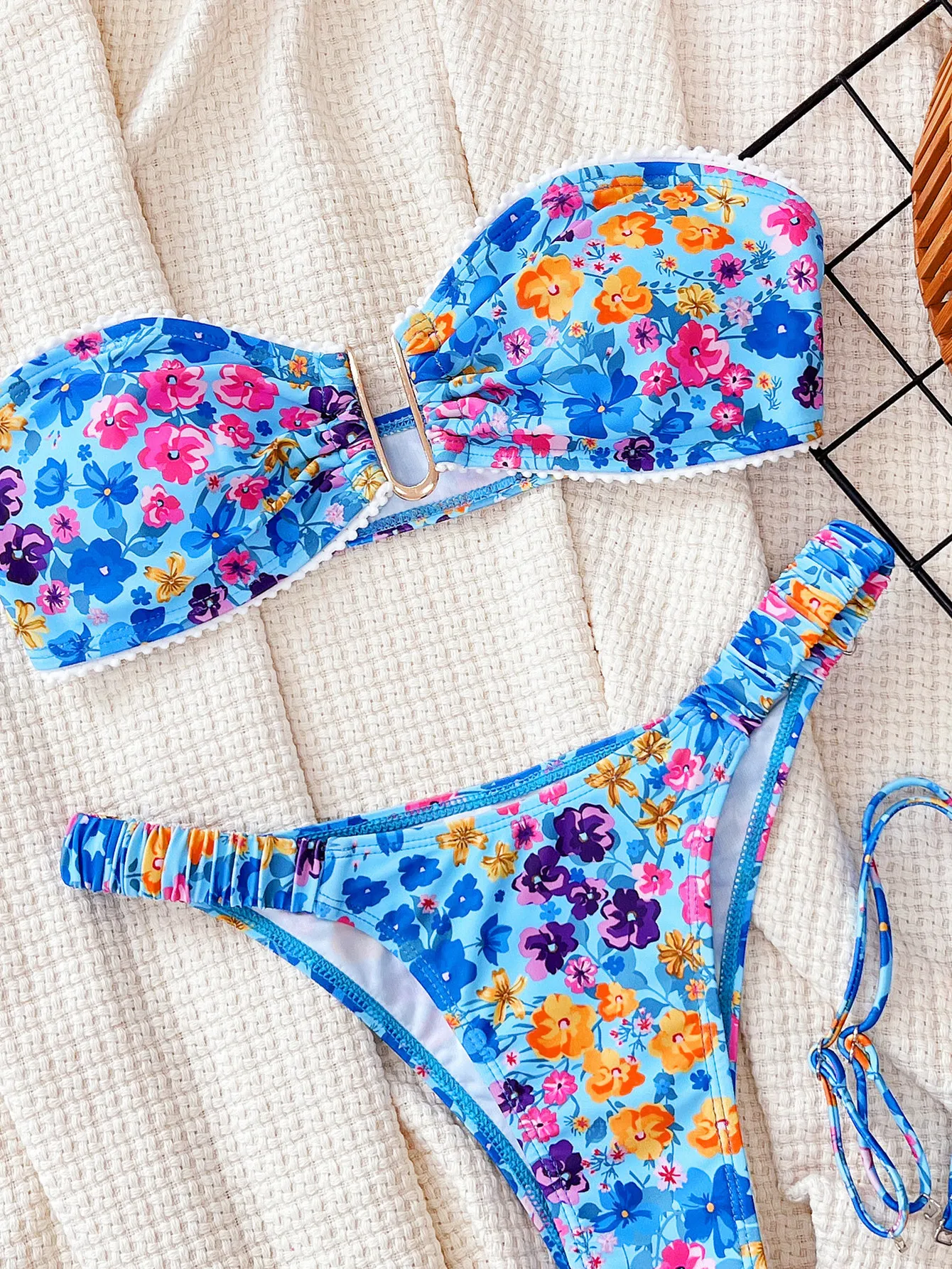 MLY Ruffle Bikini Summer Two Piece Suit Sexy Swimwear Bandage Biquini Triangle Swimsuit Printed Bathsuit