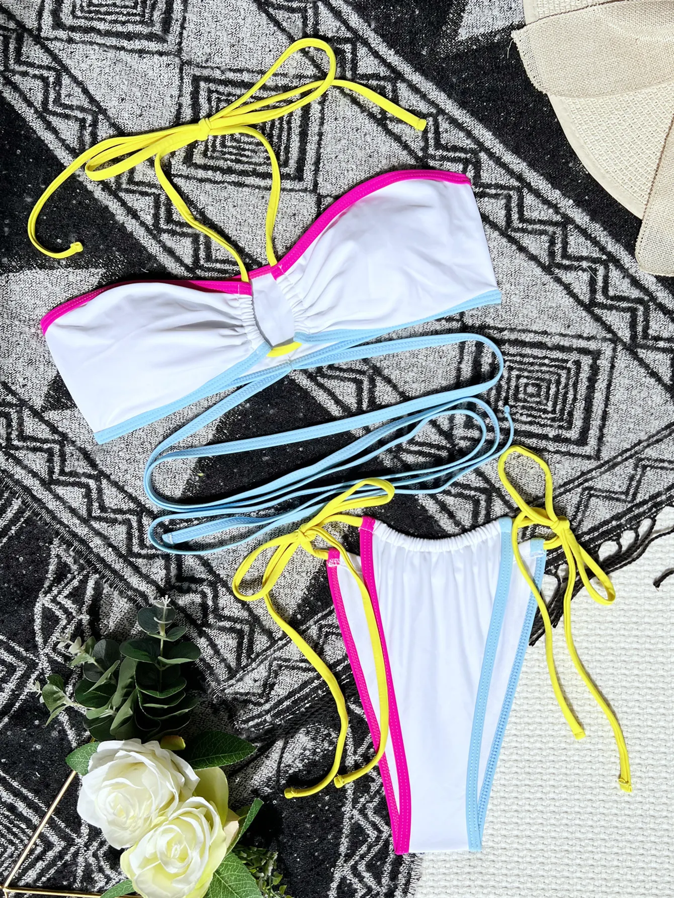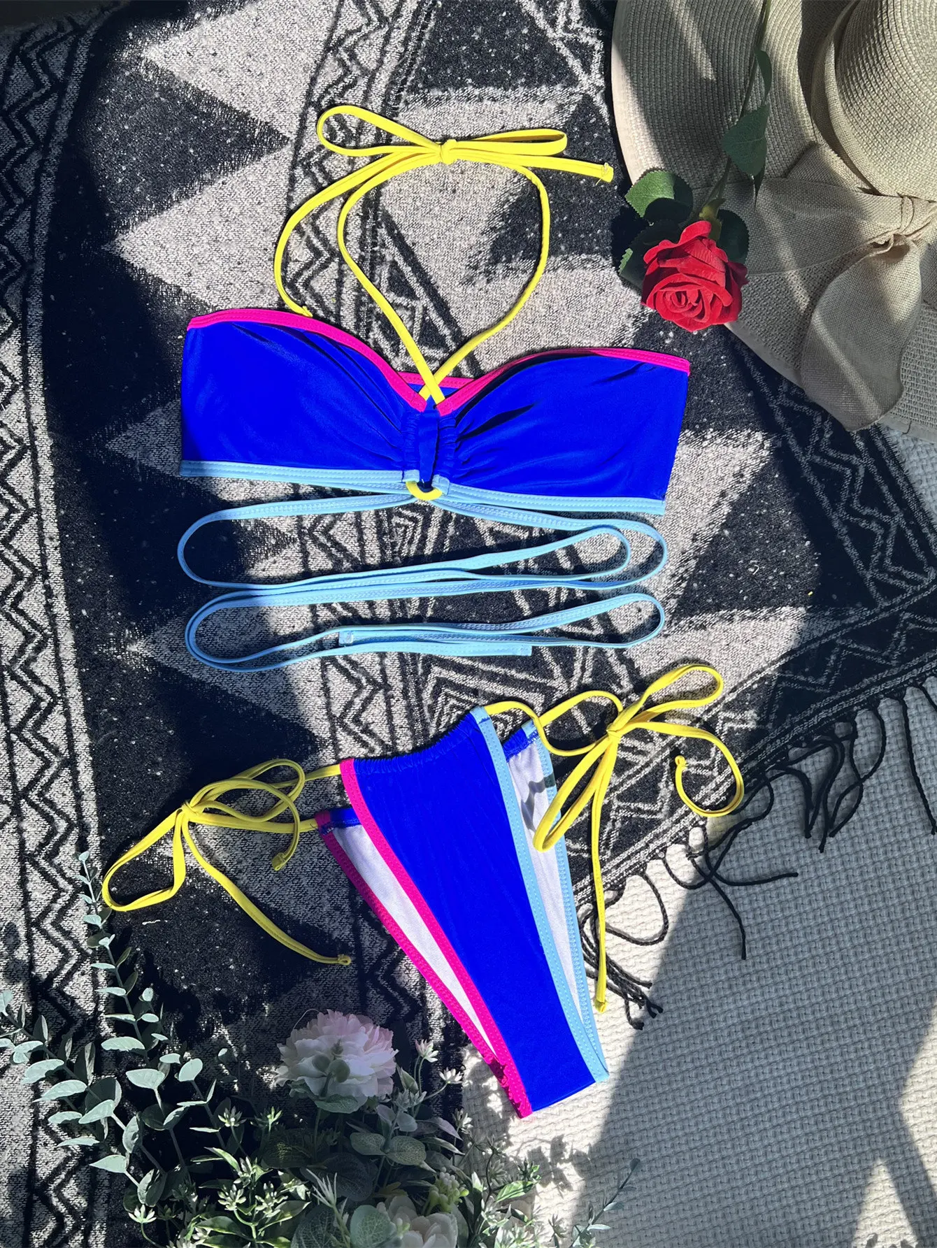 MLY Ruffle Bikini Summer Two Piece Suit Sexy Swimwear Bandage Biquini Triangle Swimsuit Printed Bathsuit