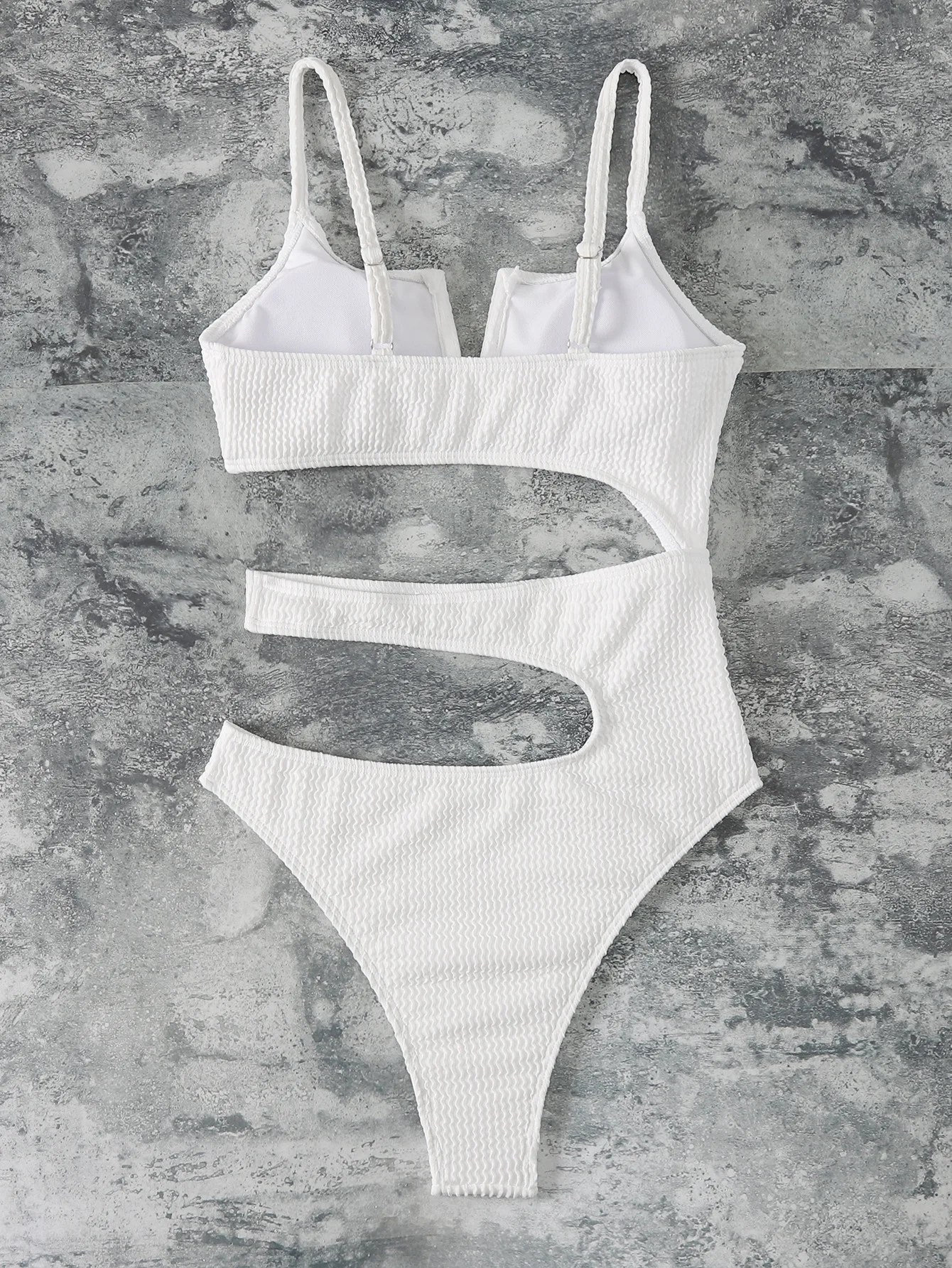 2026 White Crinkle Fabric Cut-Out One Piece Bikini Beachwear Bathing Suits