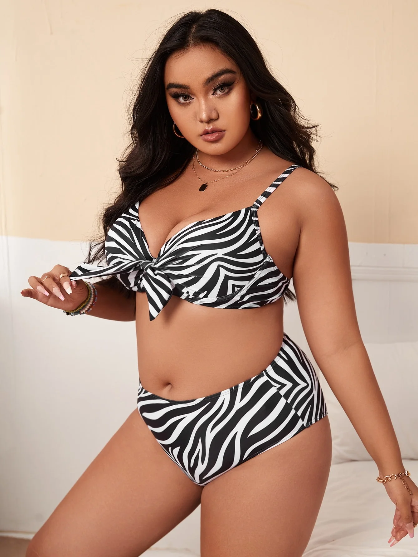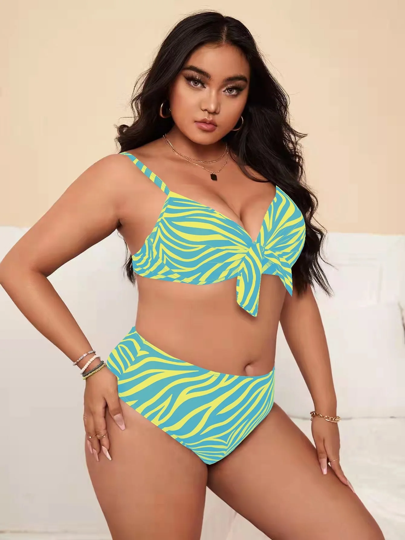Stock of Sexy Plus-size Striped High-waisted Two-piece Printed Bikini Swimsuits in 3 Colors, Size 4XL